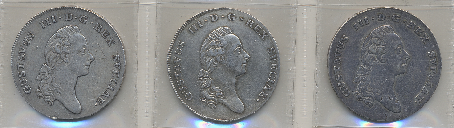 Coins, Sweden. Gustav III, SM 43, 1 riksdaler 1776. Three ex, 29.03 g, 29.20 g. and 29.25 g. 1.