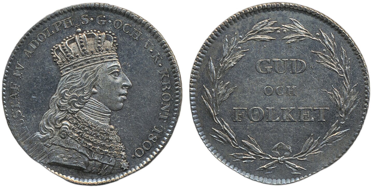 Coins, Sweden. Gustav IV Adolf, SM 45, 1/3 riksdaler (largesse money) 1800. 9.73 g. Stockholm. King's Coronation. 1+/01.