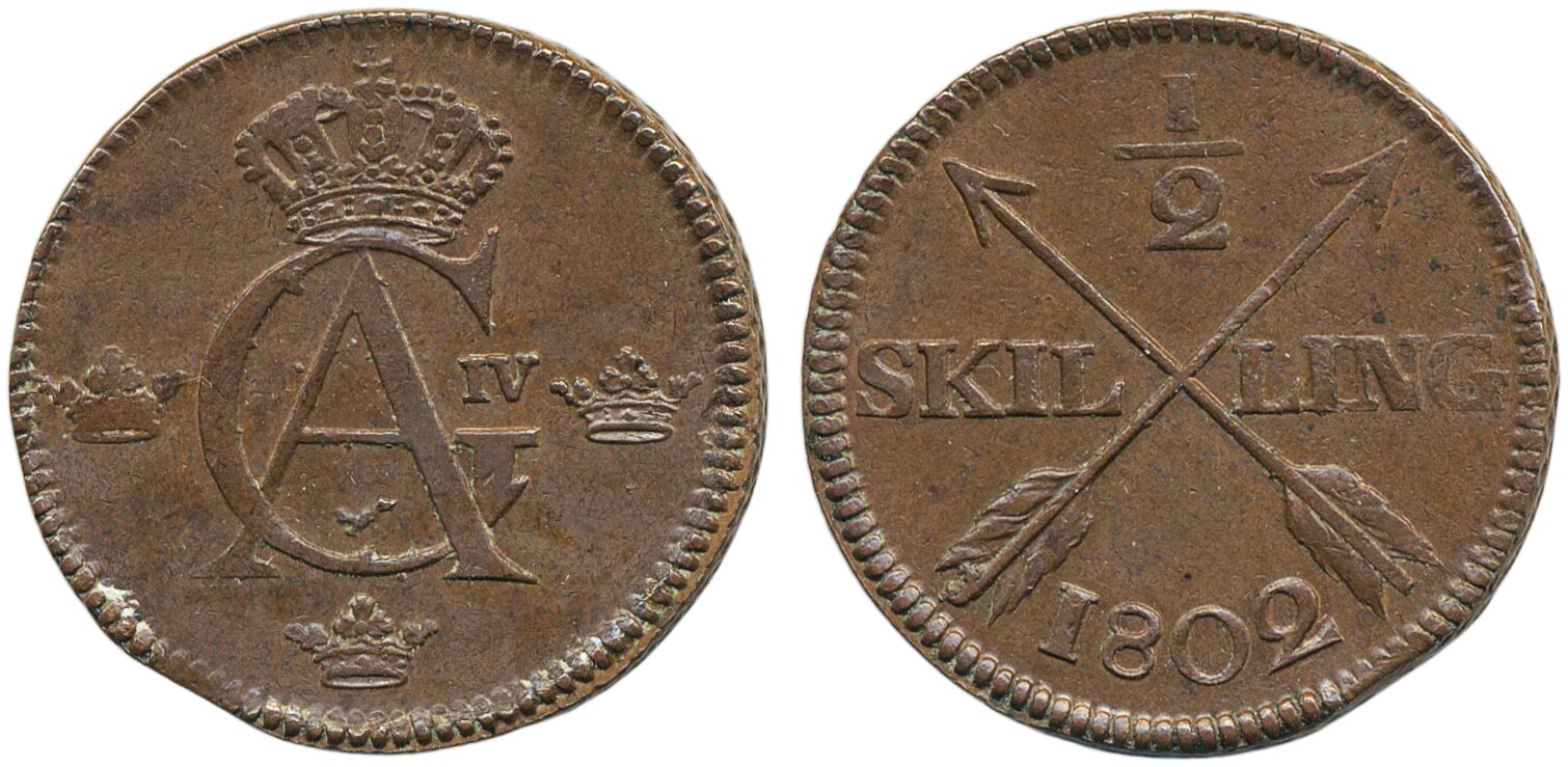 Coins, Sweden. Gustav IV Adolf, SM 49, 1/2 skilling 1802. 13.13 g. Avesta. 01.