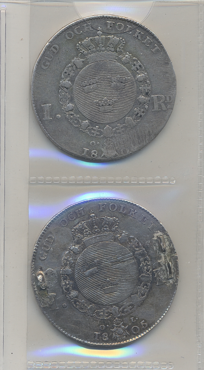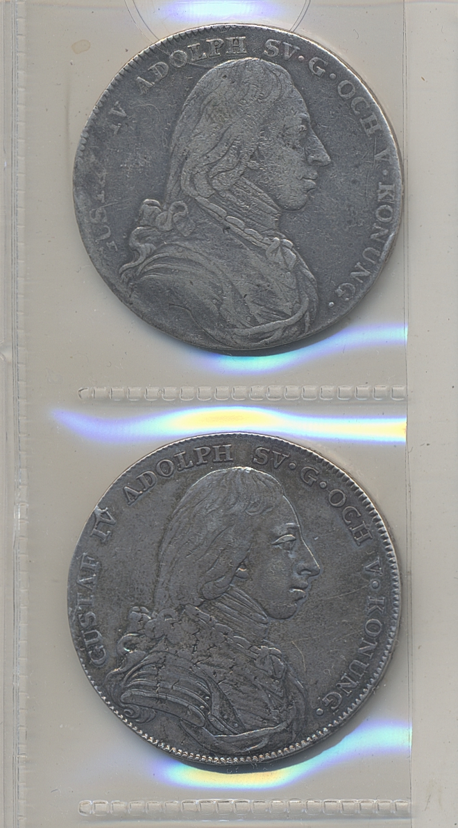 Coins, Sweden. Gustav IV Adolf, Two pcs of riksdaler, one has been mounted. Please inspect!