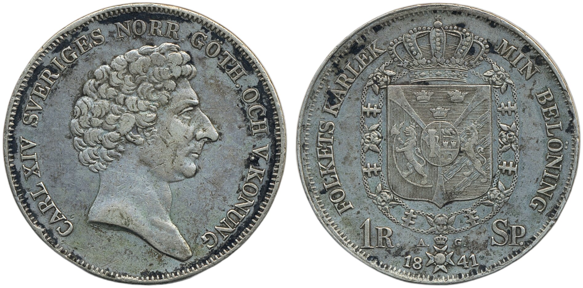 Coins, Sweden. Karl XIV Johan, SM 69, 1 riksdaler specie 1841. Scratches. 1+.