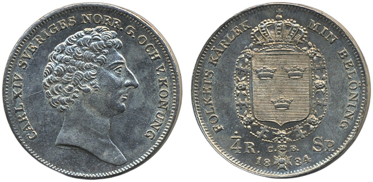 Coins, Sweden. Karl XIV Johan, SM 82, 1/4 riksdaler specie 1834. 01.
