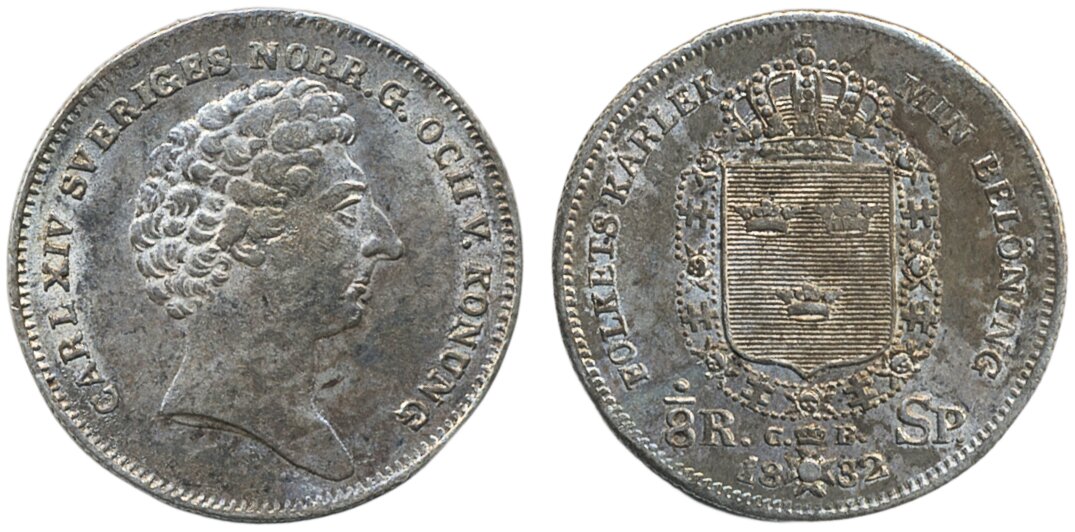 Coins, Sweden. Karl XIV Johan, SM 86, 1/8 riksdaler specie 1832. Good 01.