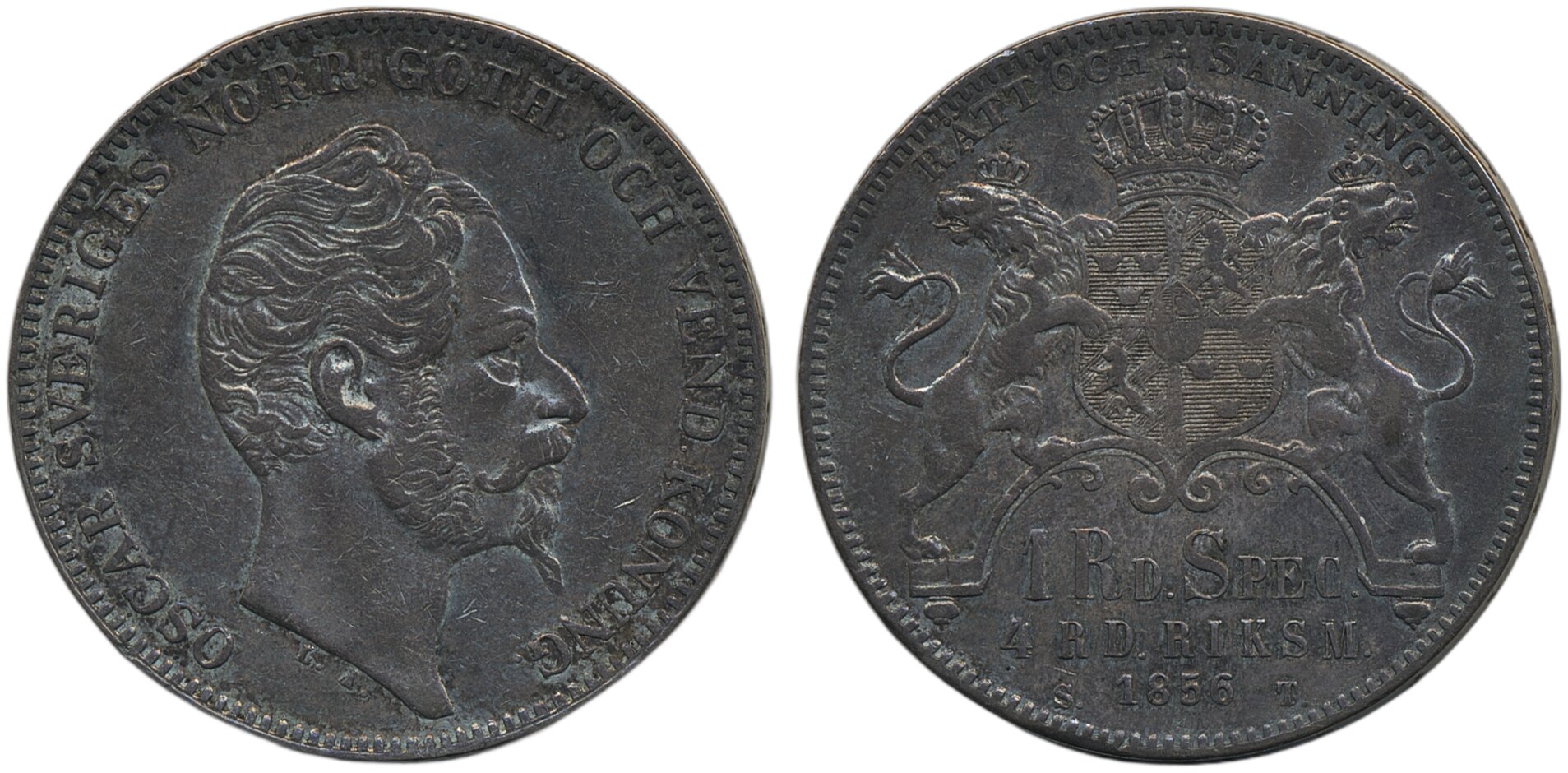 Coins, Sweden. Oskar I, SM 56b, 4 riksdaler riksmynt 1856. 33.87 g. 1.