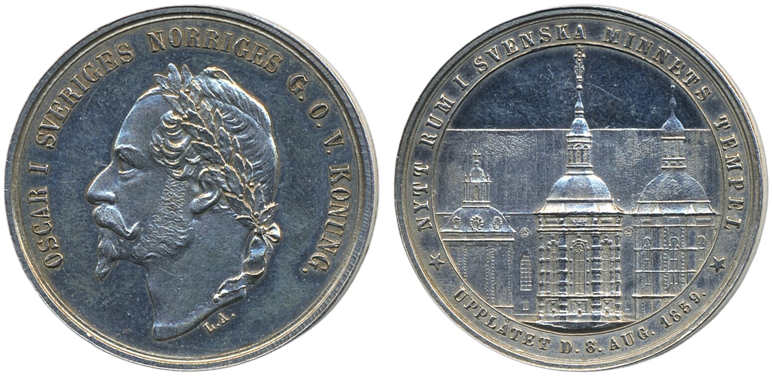 Coins, Sweden. Oskar I, SM 143, Largesse medal (1/2 riksdaler specie) 1859. To King's Funeral. Lightly cleaned. 01.