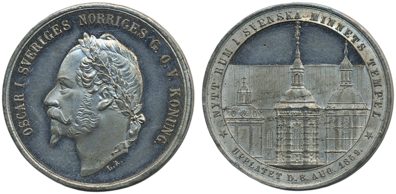Coins, Sweden. Oskar I, SM 143 var, Largesse medal (1/2 riksdaler specie) to Funeral of King Oscar 1859. Off-metal strike in white metal, 9.63 g. Extremely rare. 01/0.