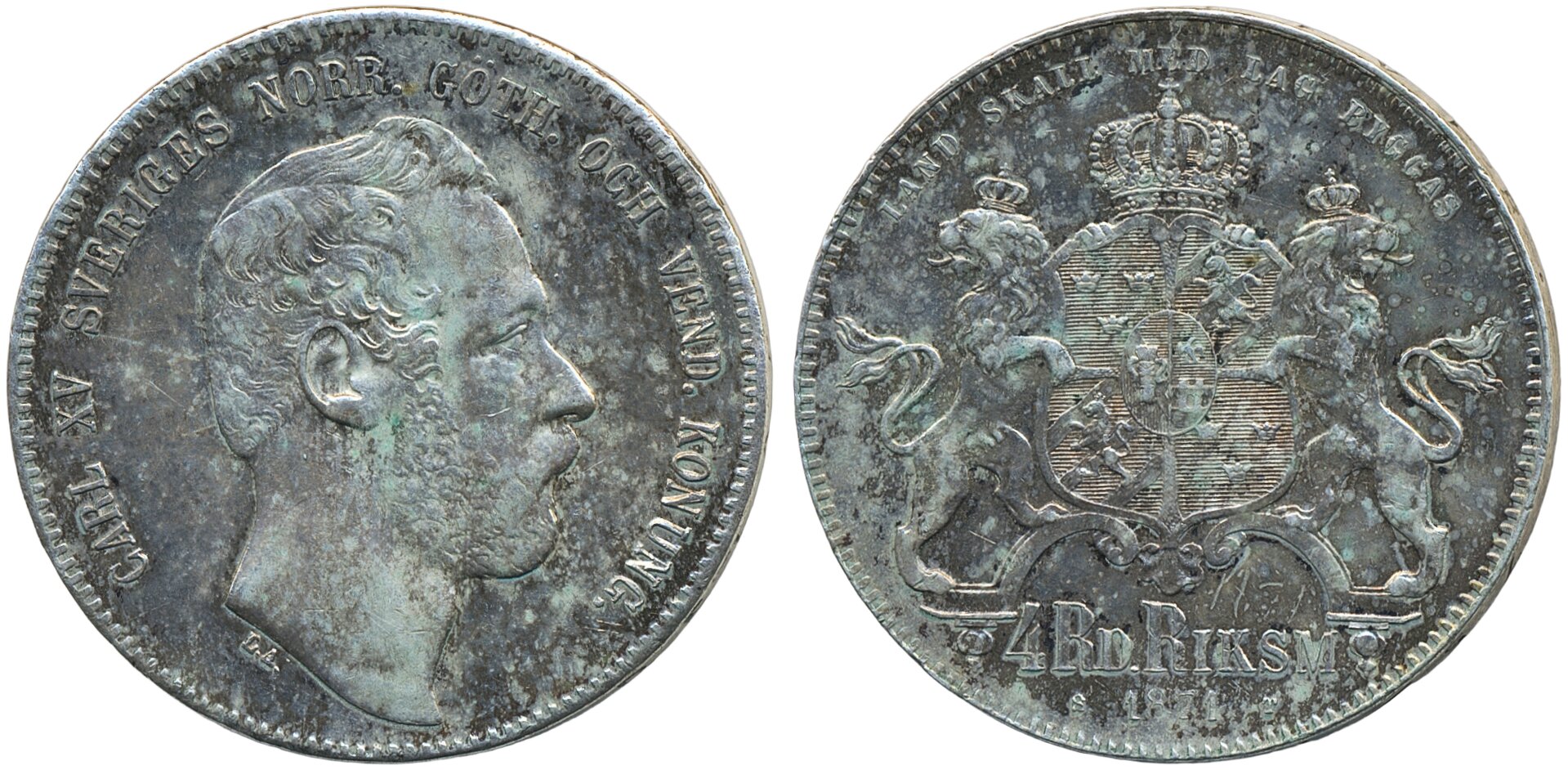 Coins, Sweden. Karl XV, SM 24, 4 riksdaler riksmynt 1871. 1/1+.