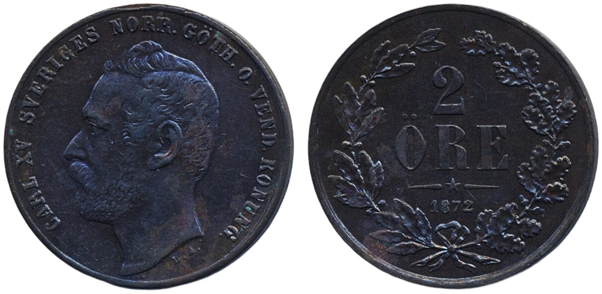 Coins, Sweden. Karl XV, SM 69, 2 öre 1872. 01.