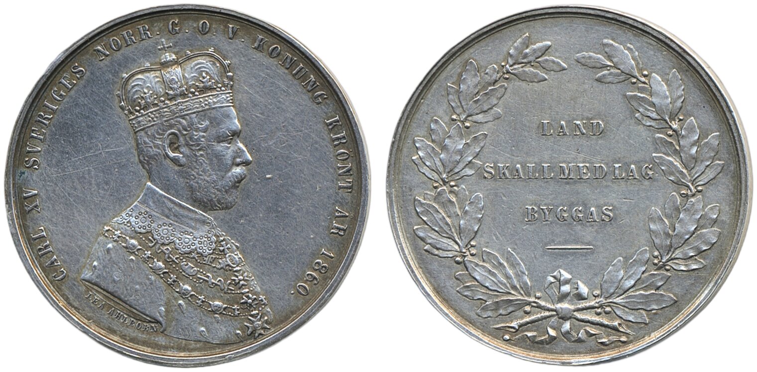 Coins, Sweden. Karl XV, SM 82, Commemorative medal for King's Coronation 1860. 12.66 g. 1+.