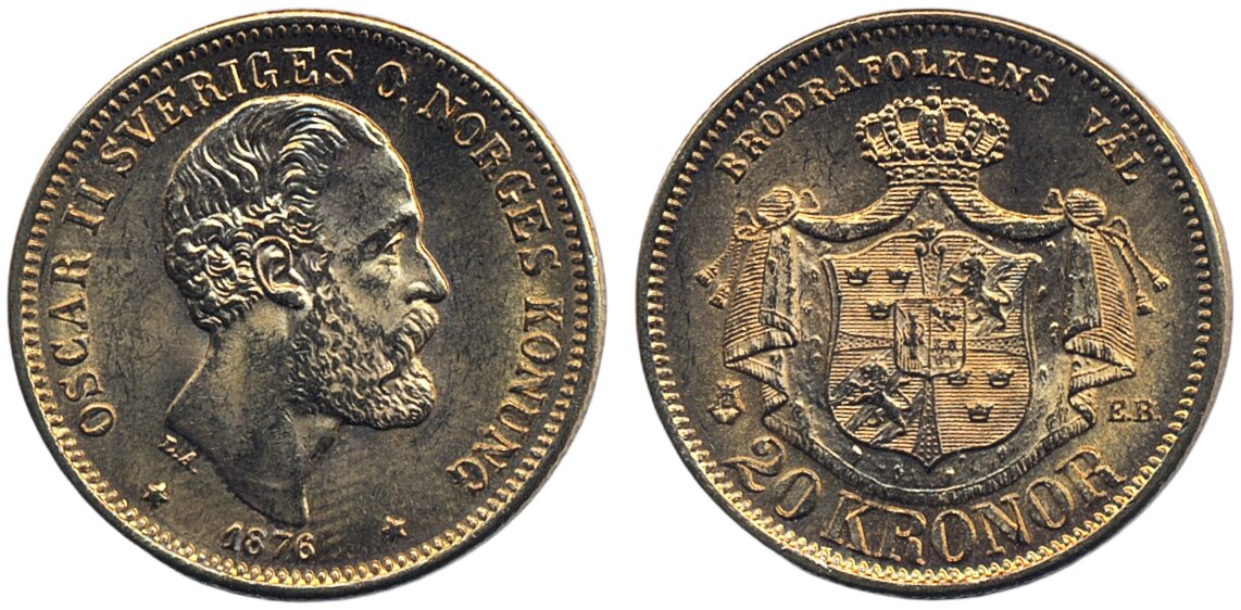 Coins, Sweden. Oskar II, MIS II.1, 20 kronor 1876. 01.