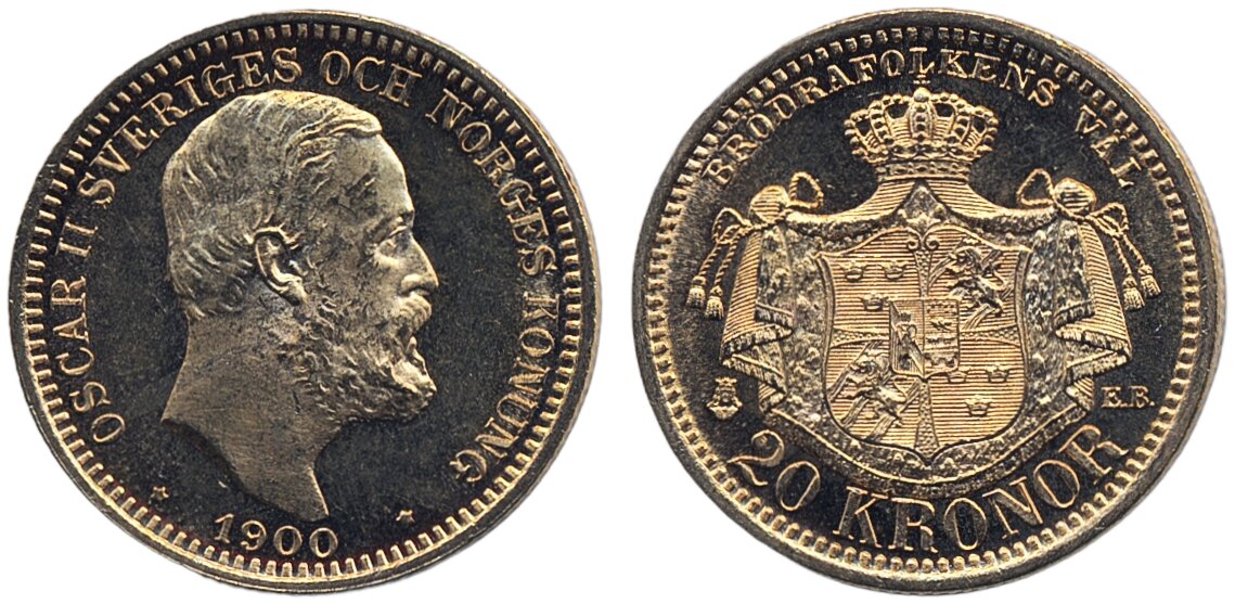 Coins, Sweden. Oskar II, MIS IV.1, 20 kronor 1900. 01/0.