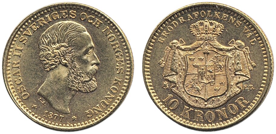 Coins, Sweden. Oskar II, MIS II.2, 10 kronor 1877. 01.