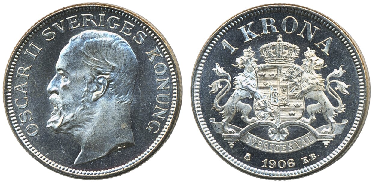 Coins, Sweden. Oskar II, MIS IV.1, 1 krona 1906. 01/0.