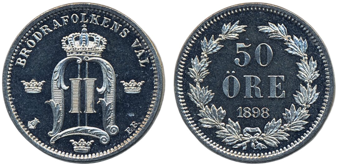 Coins, Sweden. Oskar II, MIS I.8, 50 öre 1898. Superb proof example with full mirror surfaces. 01/0.