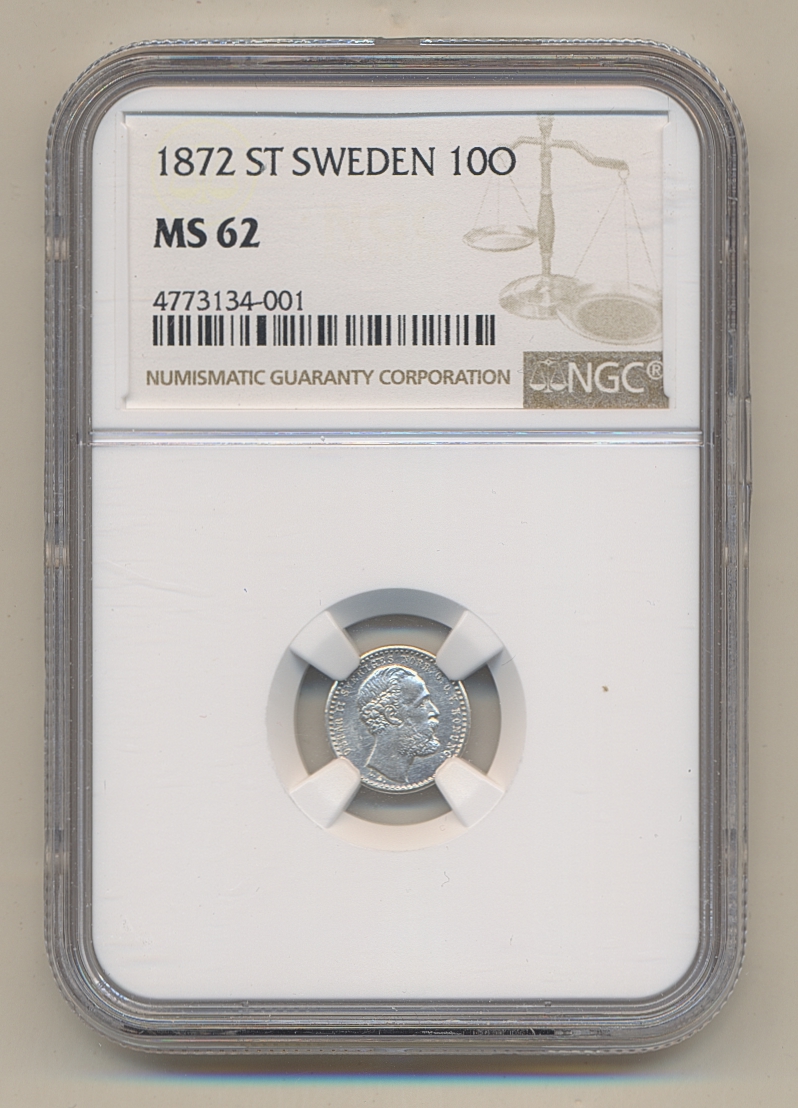 Coins, Sweden. Oskar II, SM 42, 10 öre 1872. Graded MS62 by NGC. 01. See certification at NGC