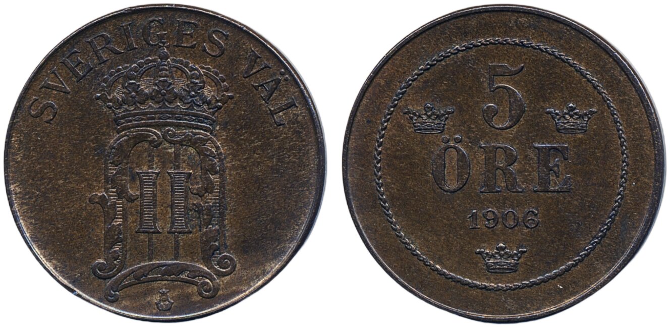 Coins, Sweden. Oskar II, MIS II.1b, 5 öre 1906. 01.