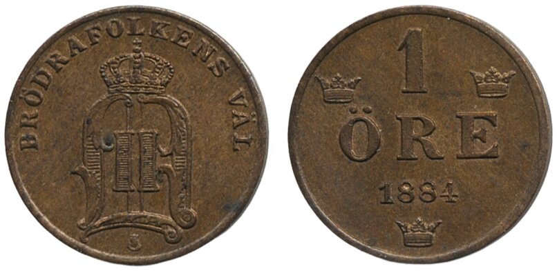 Coins, Sweden. Oskar II, MIS III.7, 1 öre 1884. 01/0.