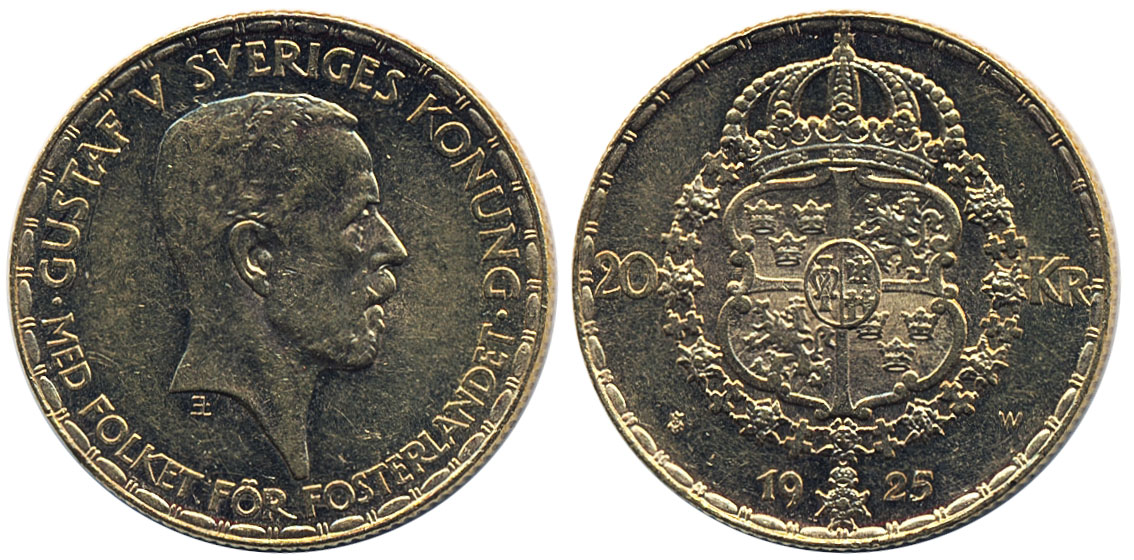 Coins, Sweden. Gustav V, SM 1, 20 kronor 1925. SG 1. 1+/01.