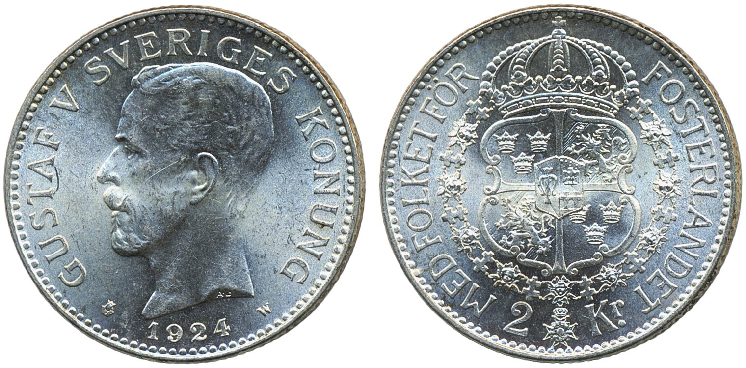 Coins, Sweden. Gustav V, MIS I.8, 2 kronor 1924. 01/0.