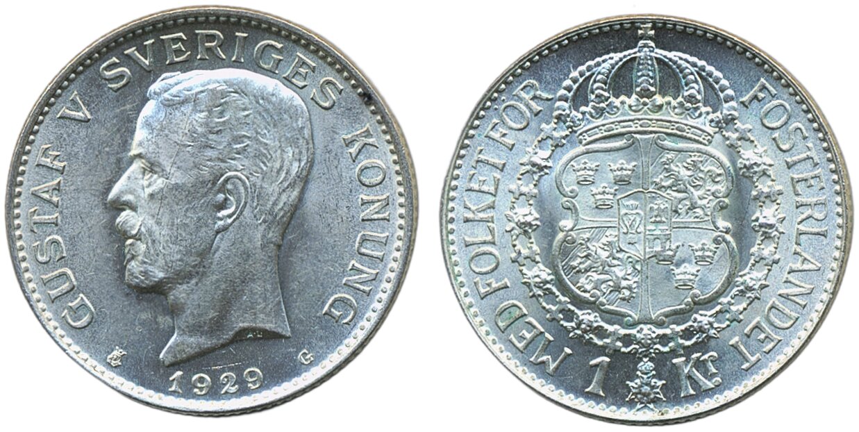 Coins, Sweden. Gustav V, MIS I.15, 1 krona 1929. 01/0.