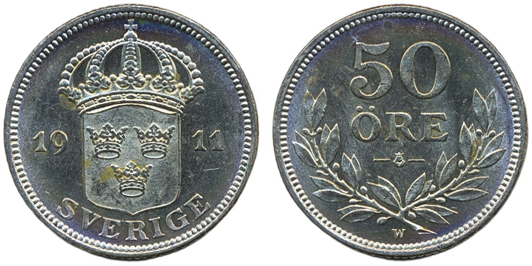 Coins, Sweden. Gustav V, MIS I.1, 50 öre 1911. 01/0.
