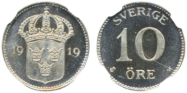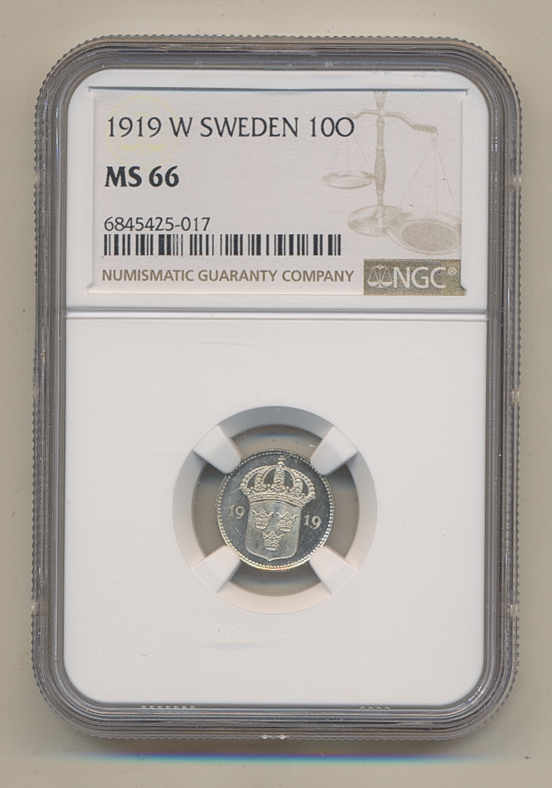 Coins, Sweden. Gustav V, SM 143, 10 öre 1943. Graded by NGC as MS66. 0. See certification at NGC