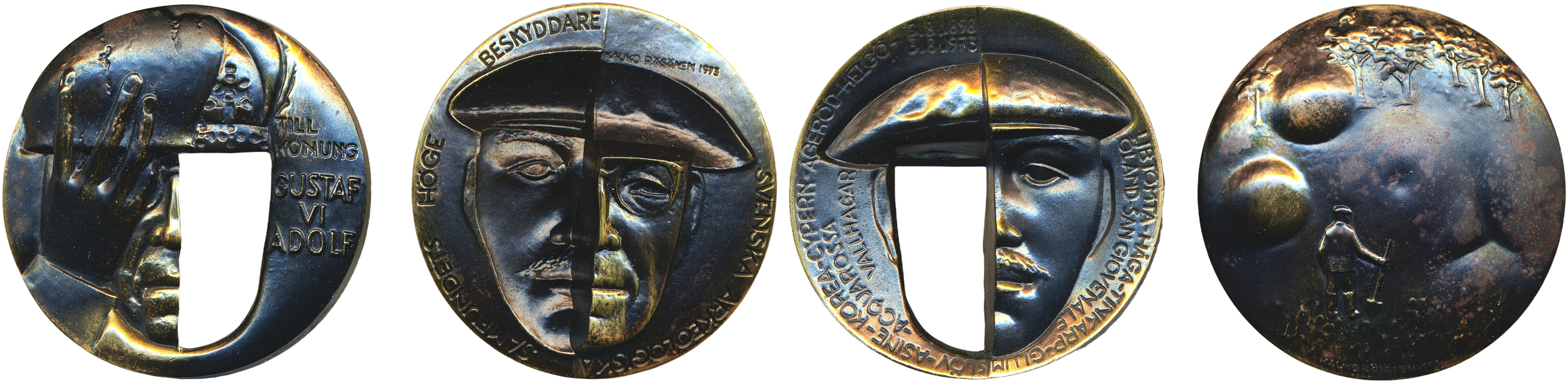 Medals, regal, Sweden. Gustav VI Adolf, 211.69 g. Bronze medal in two pcs. Gustav VI Adolf by Kauko Räsänen 1973.