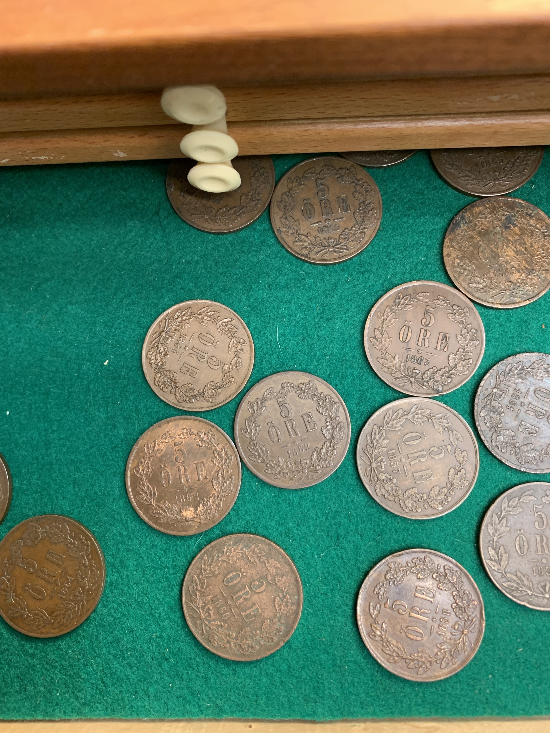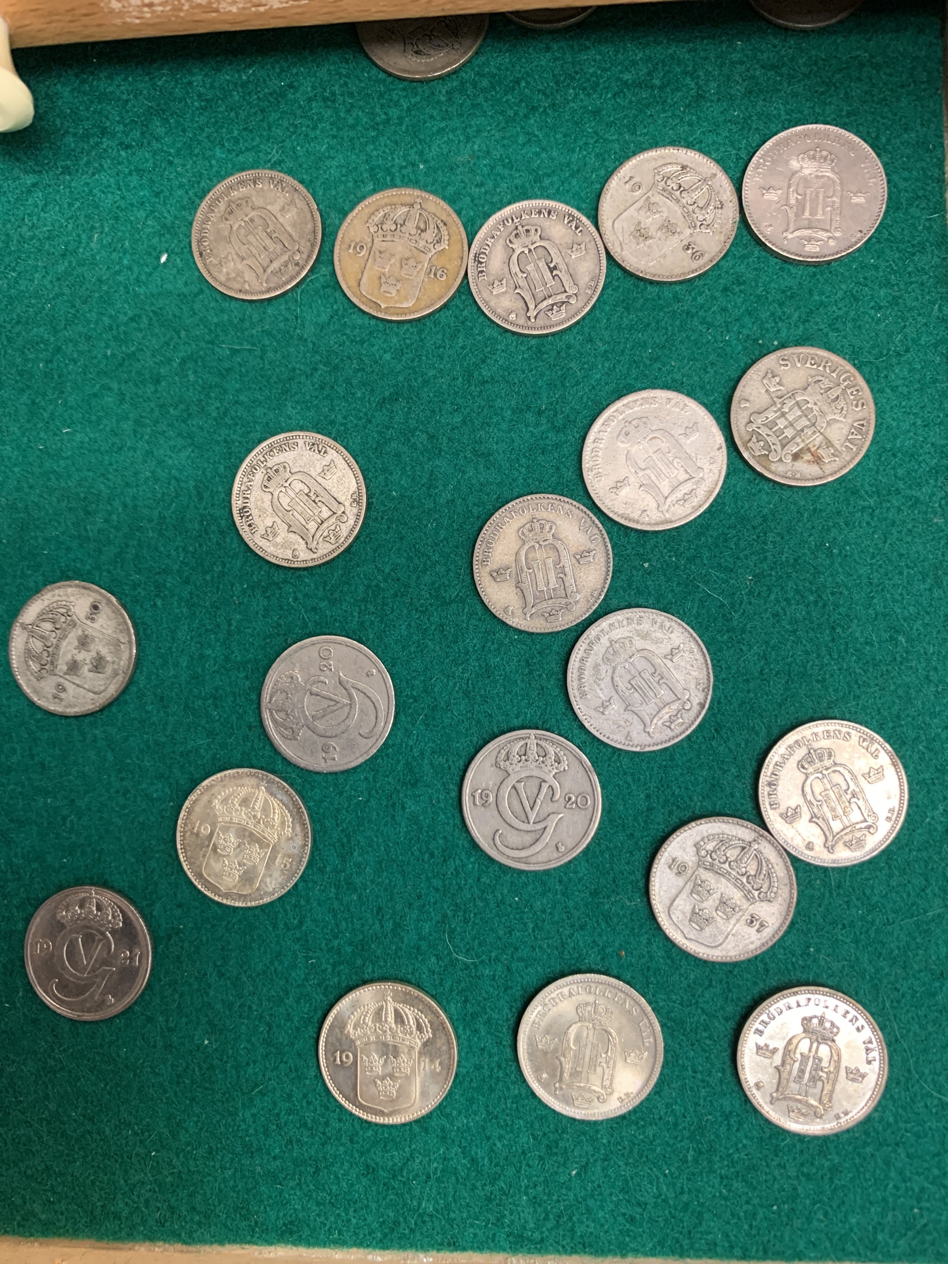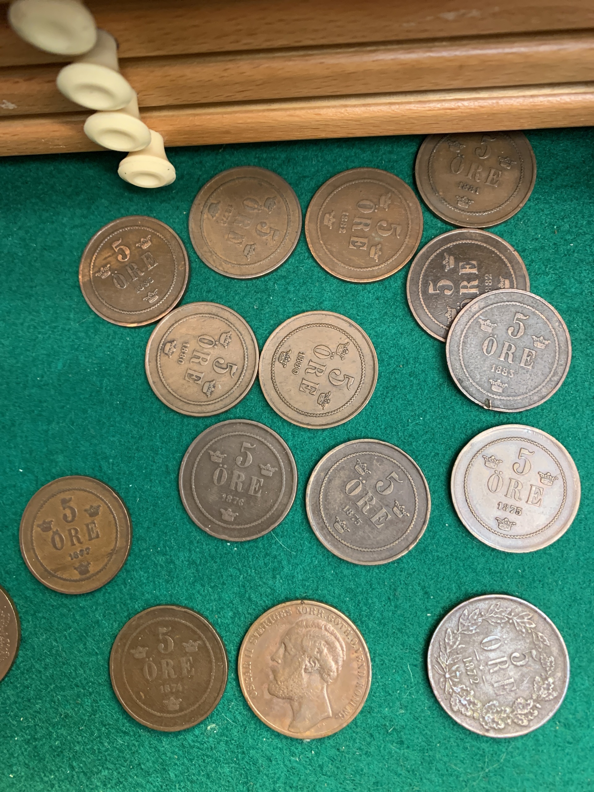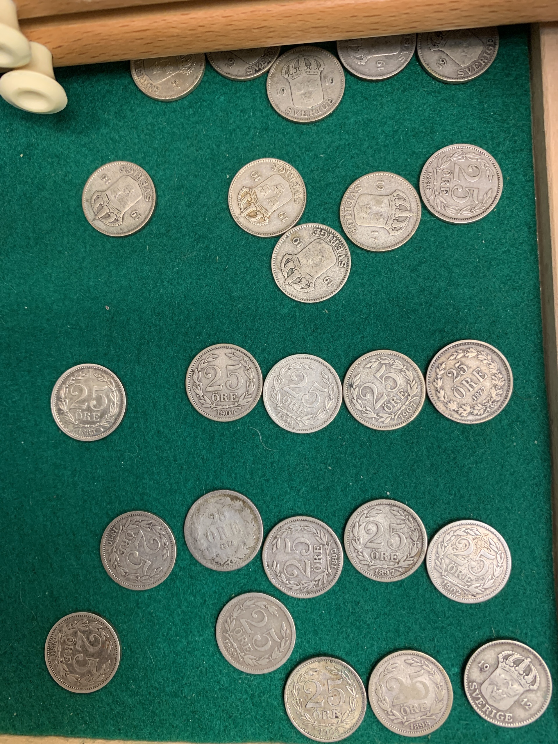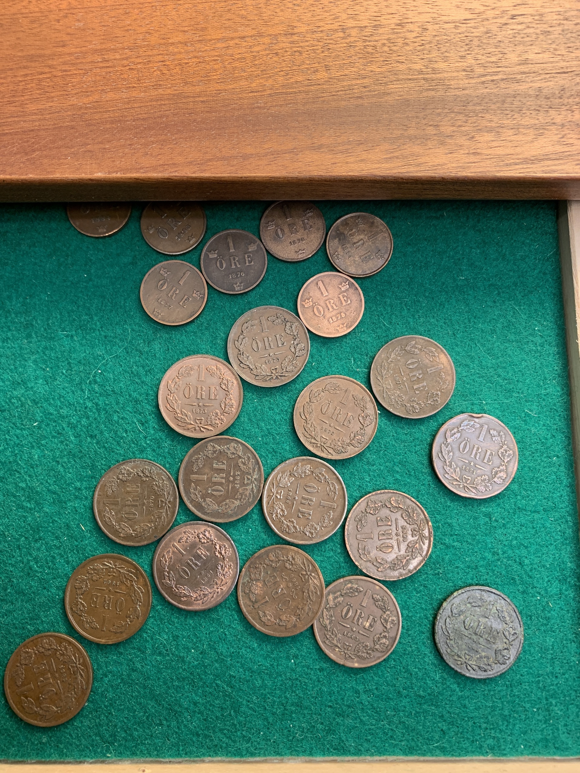 Coins, Sweden. Coin cabinet in wood 'Numis original' with twelve drawers. Some good qualities included. Please see a selection of scans at www.philea.se. Please inspect! Approx. 5 kg.
