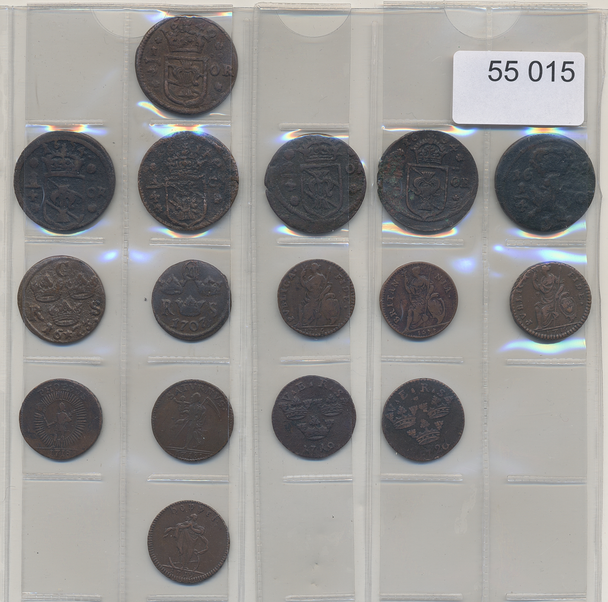 Coins, Sweden. Kristina-Karl XII copper coins including six emergency issues. In total 16 coins including some in high grade. Please inspect! 1?-01.
