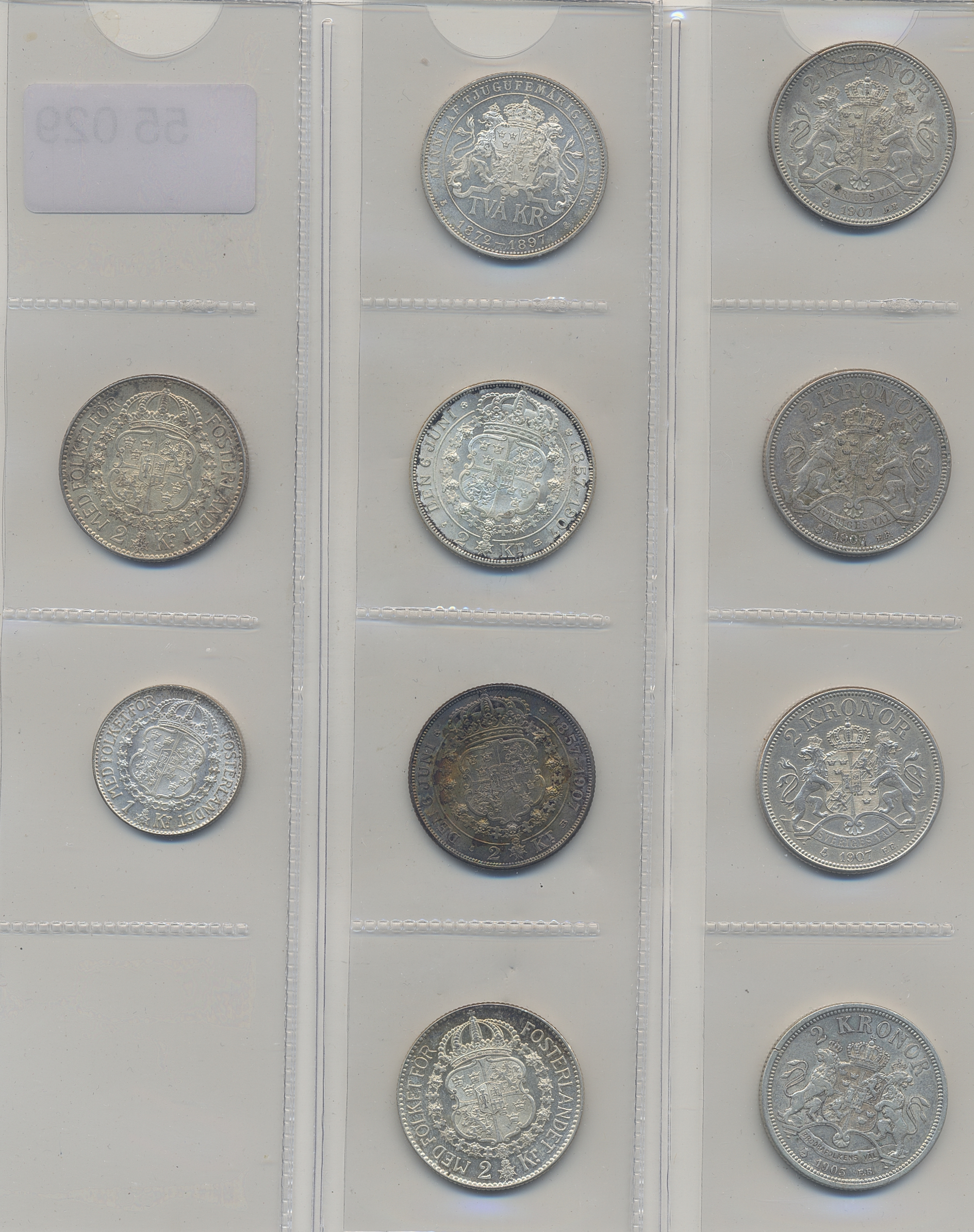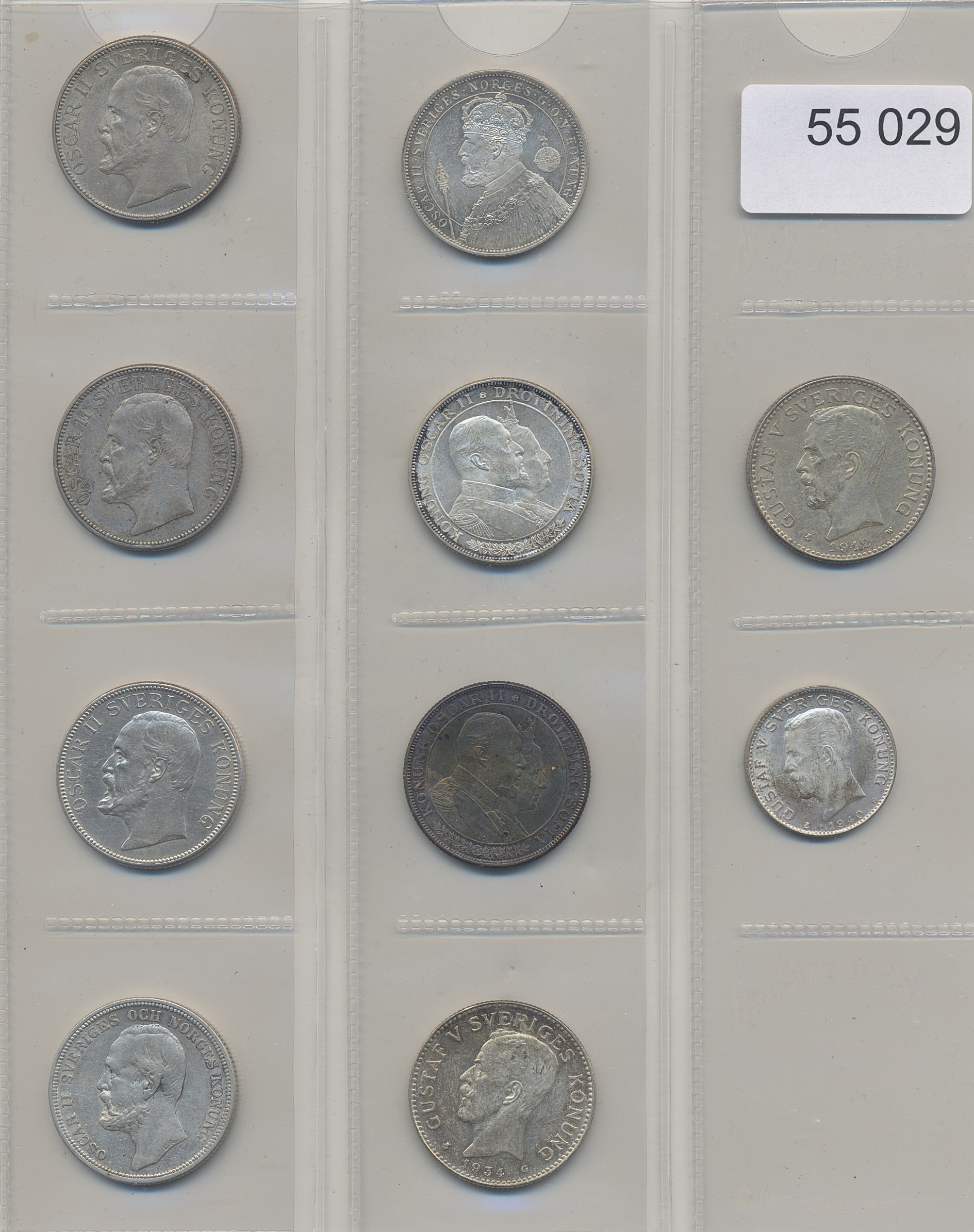 Coins, Sweden. Lot of 2 kronor and 1 kronor coins of Oscar II and Gustav V including some high grade examples of Oscar II commemoratives and Gustav V coinage. Please inspect! 1/1+-01/0.