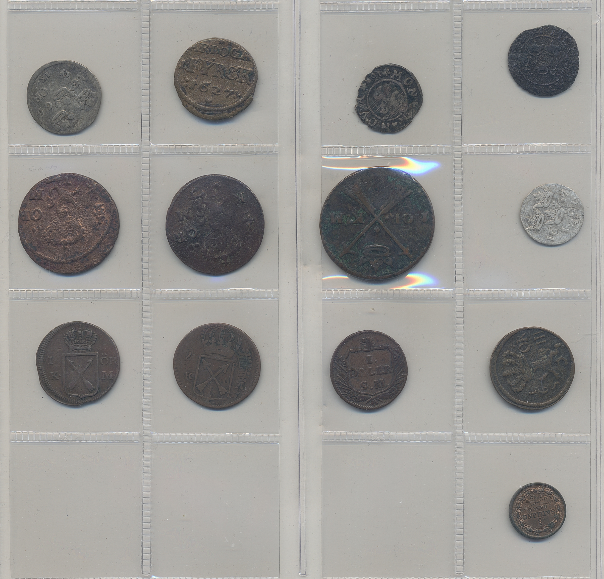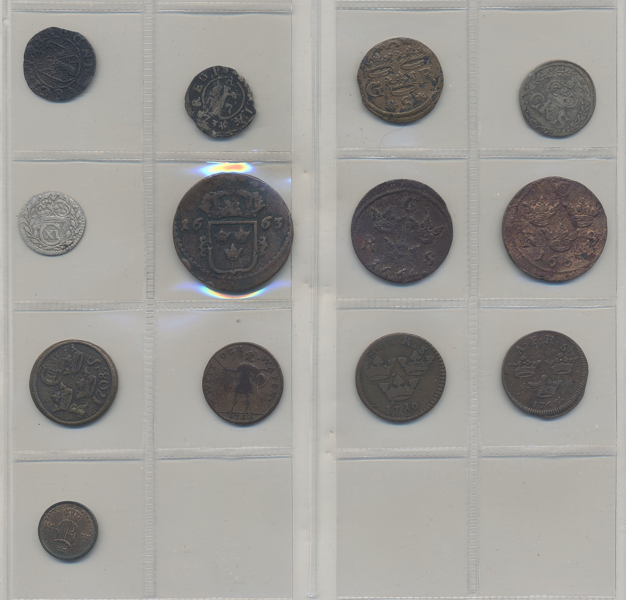 Coins, Sweden. Lot. 13 older coins in silver, copper and bronze. The entire lot is presented at www.philea.se. Mixed quality.