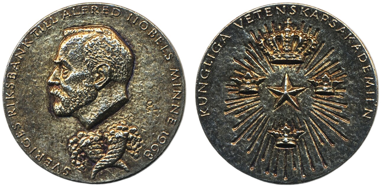 Medals, non-regal, Sweden. Alfred Nobel (1833-1896). Donor. Nominating Committee for Economic Sciences. Jeton in gilt silver, 27 mm, 12.6 g., by G. Svensson Lundqvist 1969. Lagerqvist 6 A. 01.