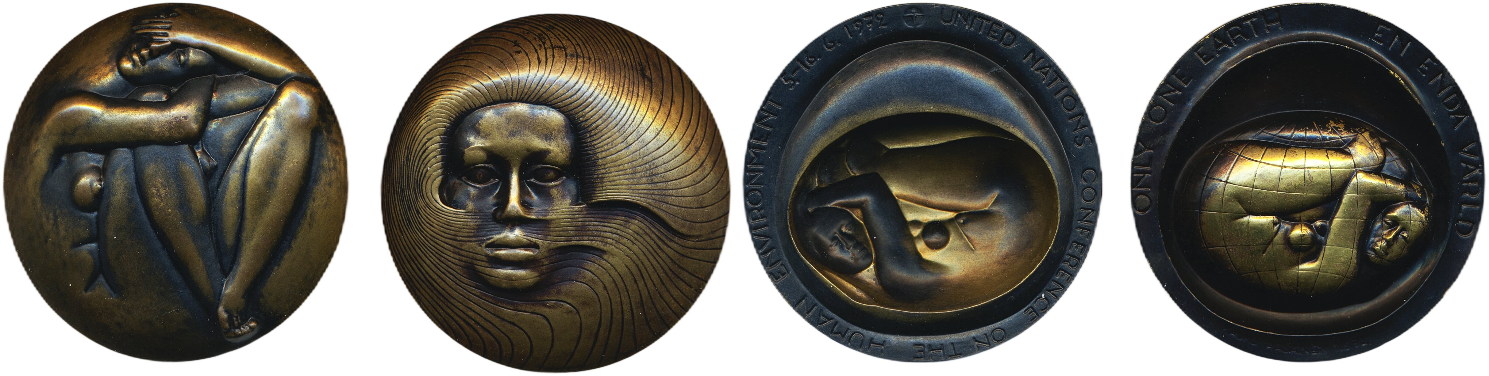 Medals, non-regal, Sweden. Kauko Räsänen, bronze medal from 1972 issued to United Nations Conference on The Human Environment in Stockholm. In two parts, 50 mm. Numbered 1268/3500 on edge.