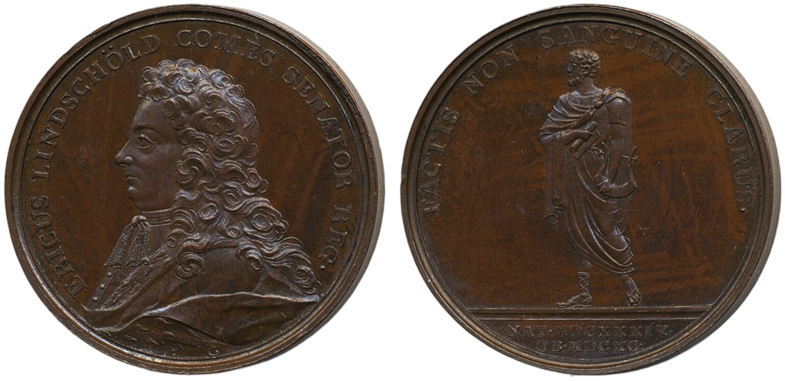 Medals, non-regal, Sweden. Hyckert I:74, Erik Lindschöld (1634-1690). Poet. Medal in bronze, 31 mm, 12.9 g., by G.A. Enegren for The Swedish Academy 1830. Svensén page 90. 01.