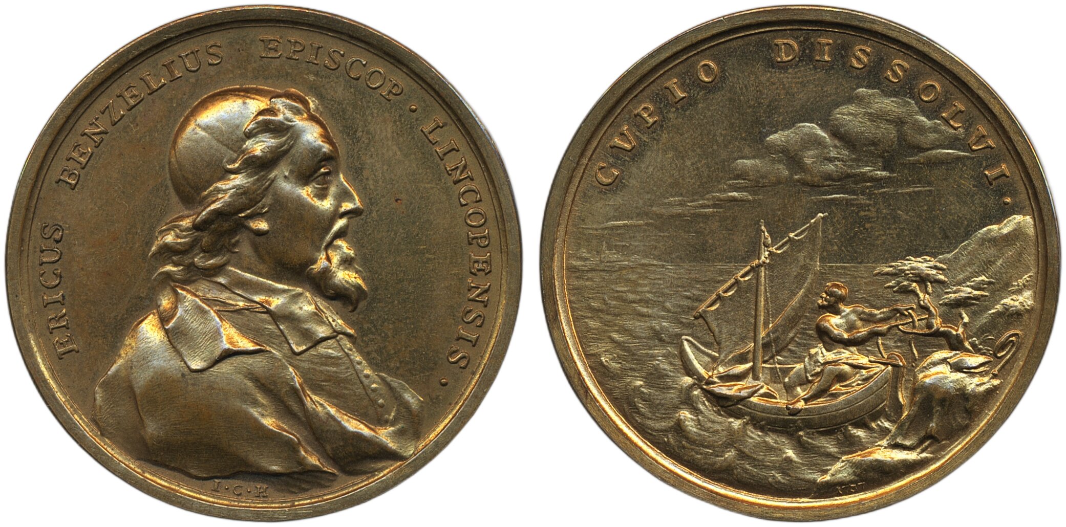 Medals, non-regal, Sweden. Hyckert I:170:1, Erik Benzelius (1675-1743). Bishop and numismatist. Medal in bronze, 43 mm, 29.3 g, by J.C. Hedlinger. Struck in 1945. 01.