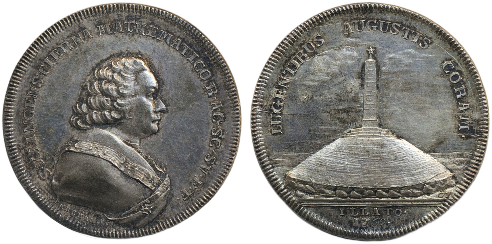 Medals, non-regal, Sweden. Hyckert I:205:1, Samuel Klingenstierna (1698-1765). Mathematiciam. Medal in silver, 35 mm, 16.5 g., by C.G. Fehrman 1773 for The Royal Swedish Academy of Sciences. KVA 60. 01.
