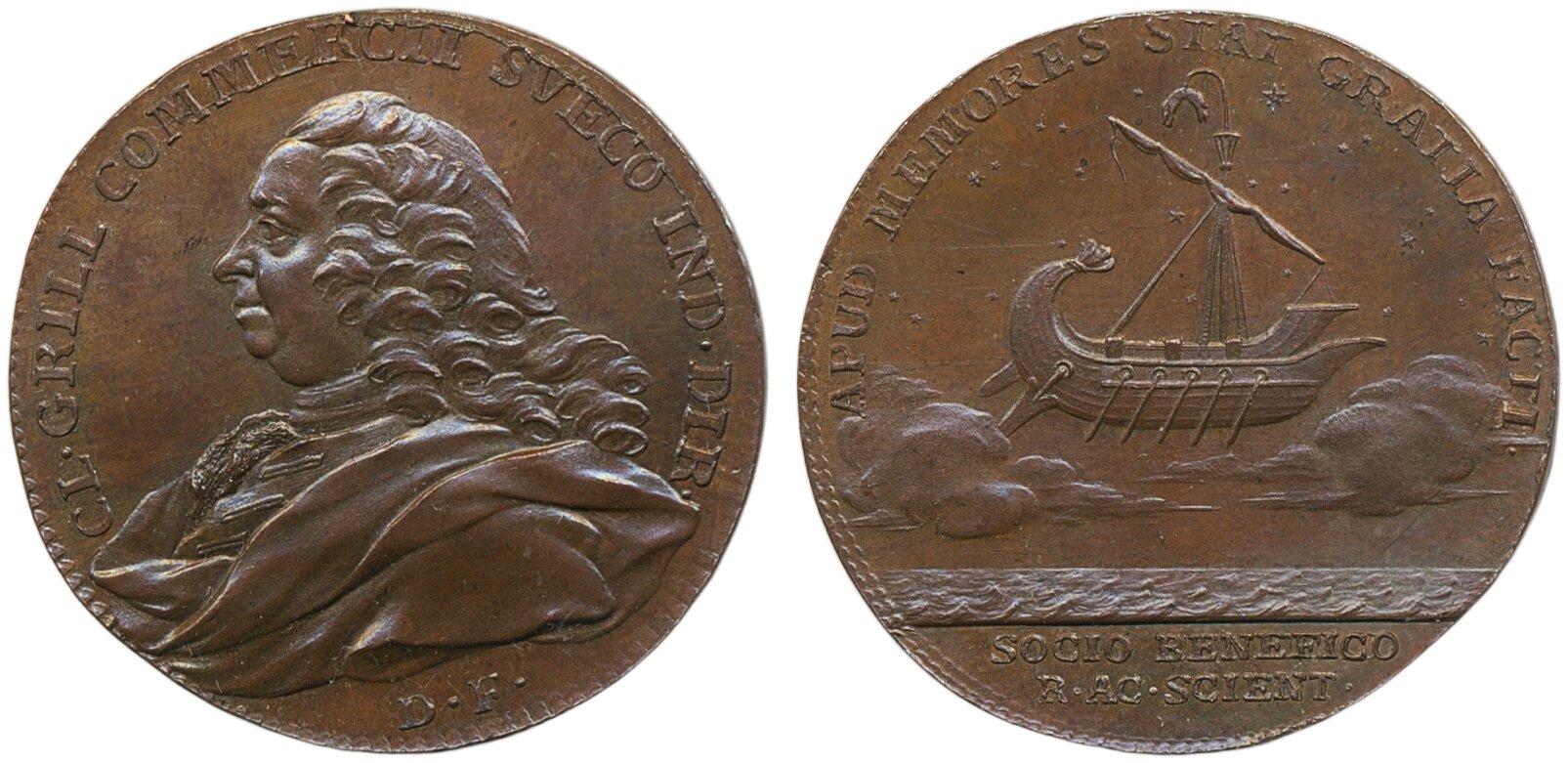 Medals, non-regal, Sweden. Hyckert I:209:1, Claes Grill (1705-1767). Merchant, banker. Medal in bronze, 32 mm, 9.4 g., by D. Fehrman for The Royal Swedish Academy of Sciences 1759. KVA 55. 01.