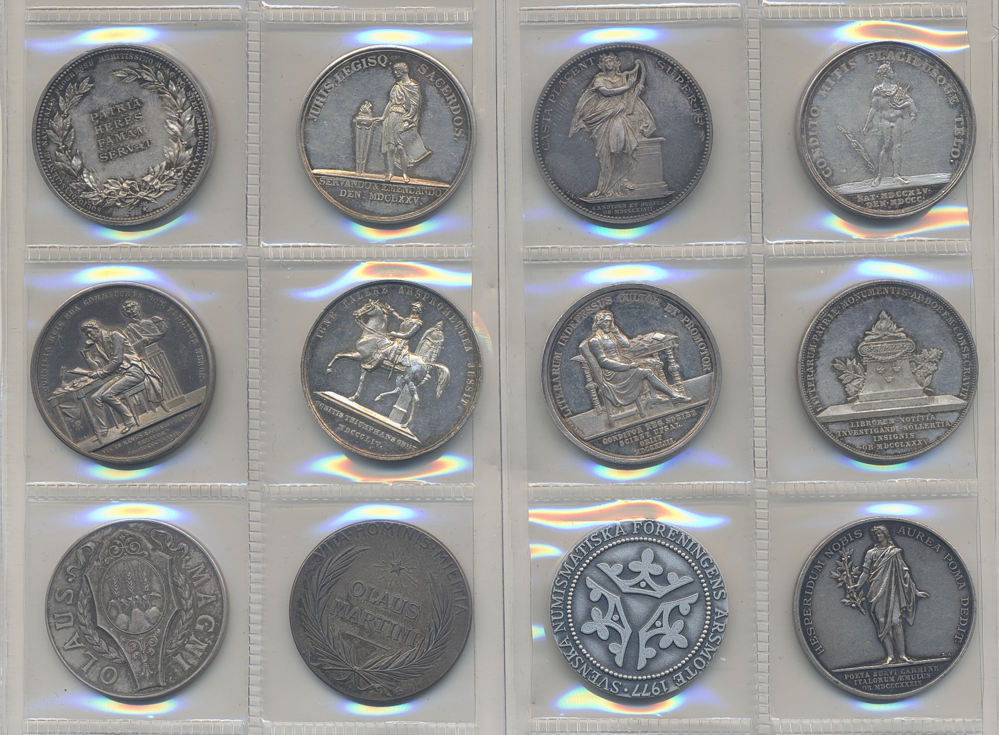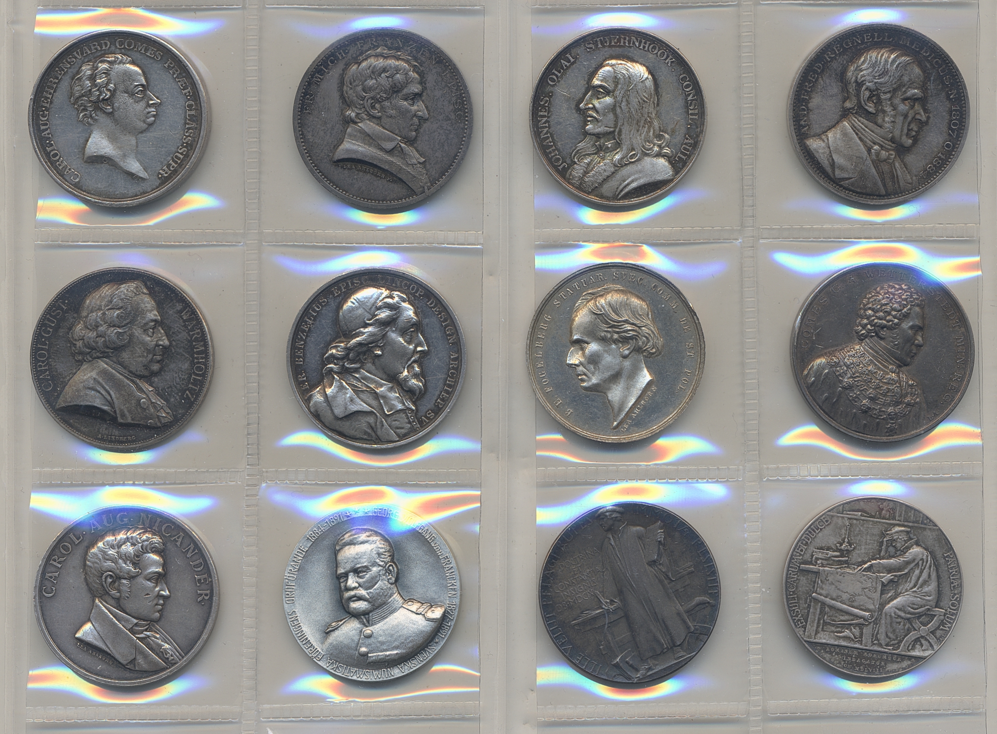 Medals, non-regal, Sweden. Lot. Twelve medals in silver, total weight 186.73 g., with different personalities. The entire lot is presented at www.philea.se. 1+-01.