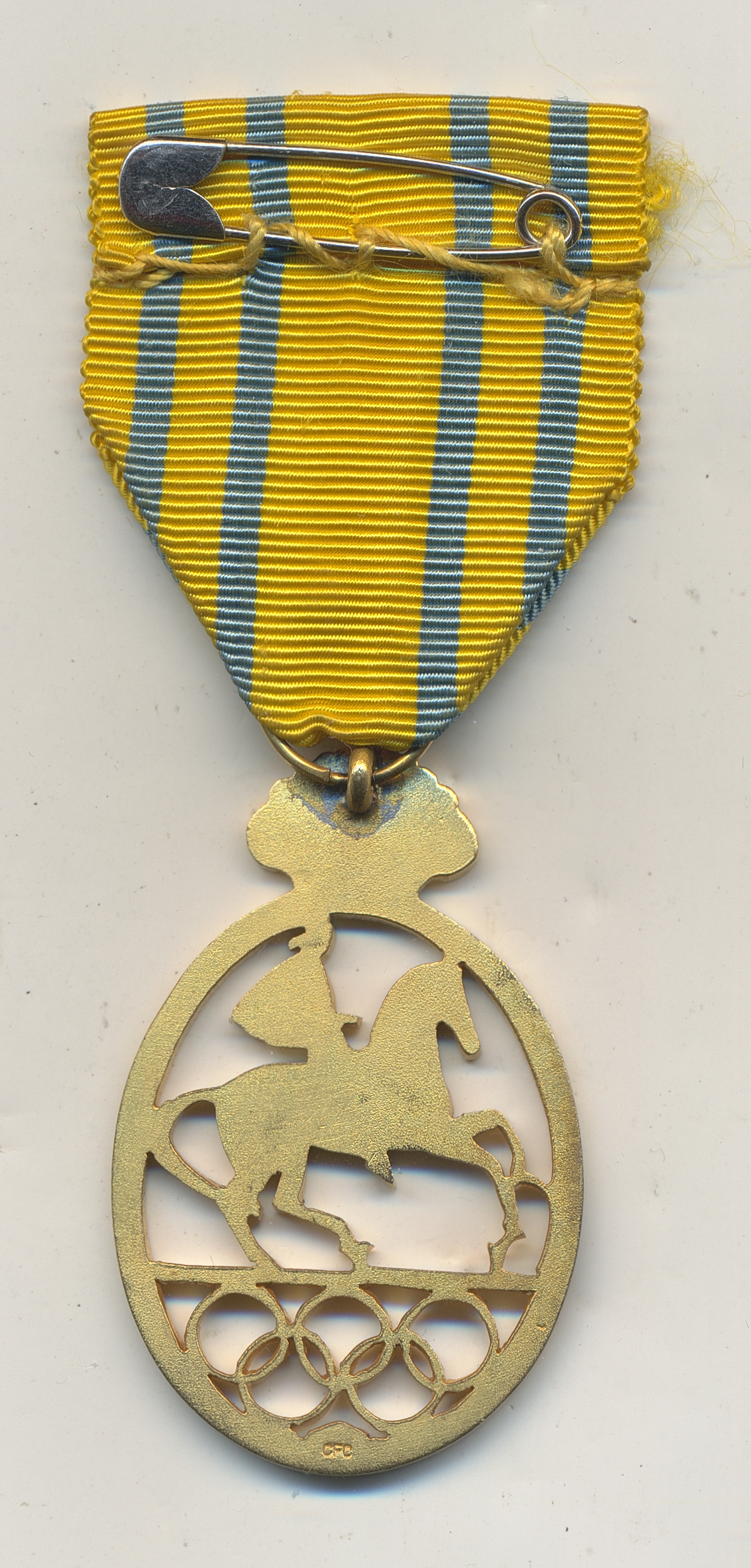 Medals, non-regal, Sweden. "XVI OLYMPIADENS RYTTARTÄVLINGAR STOCKHOLM 1956". Official medal of merit in gilded brass, 47×30 mm. 01.