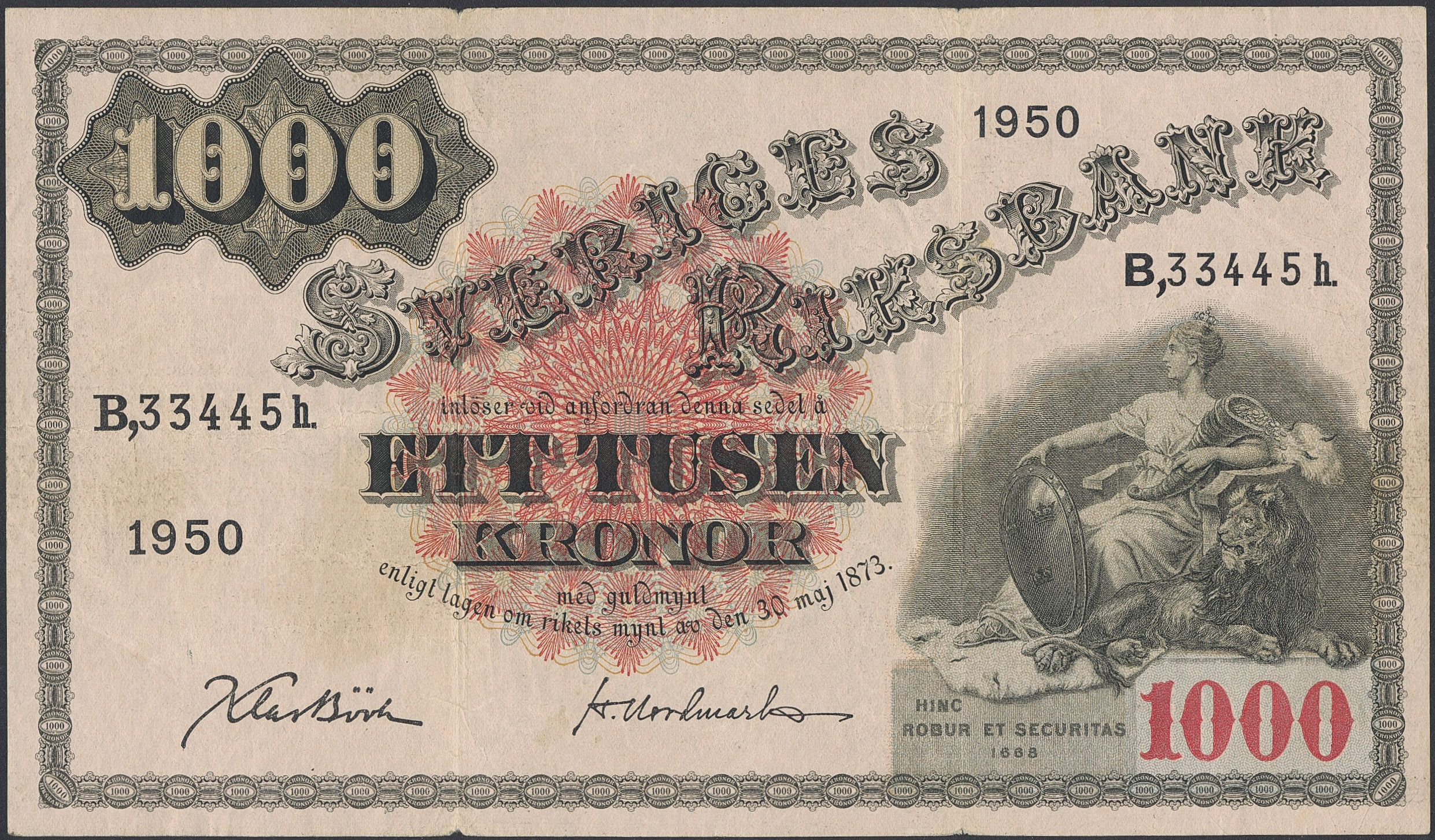 Banknotes, Sweden. SF X7:1, 1000 kronor 1950. B33445h. 1.
