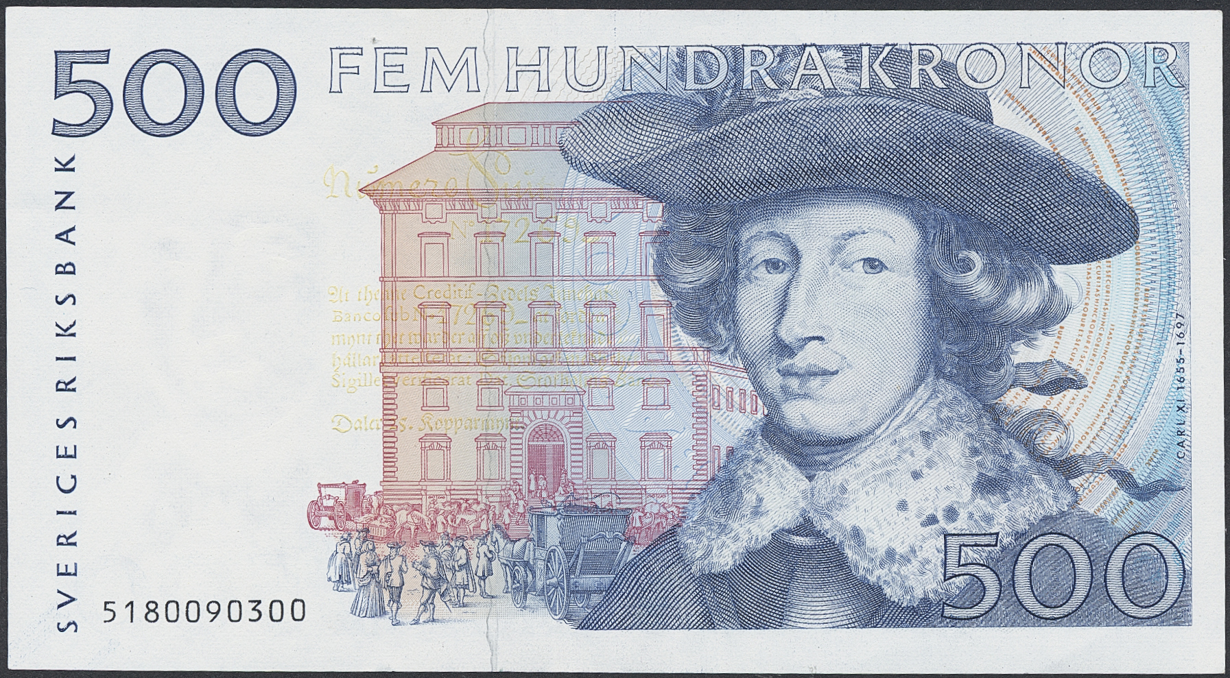 Banknotes, Sweden. SF W1:1, 500 kronor 1985. No: 5180090300. 0.