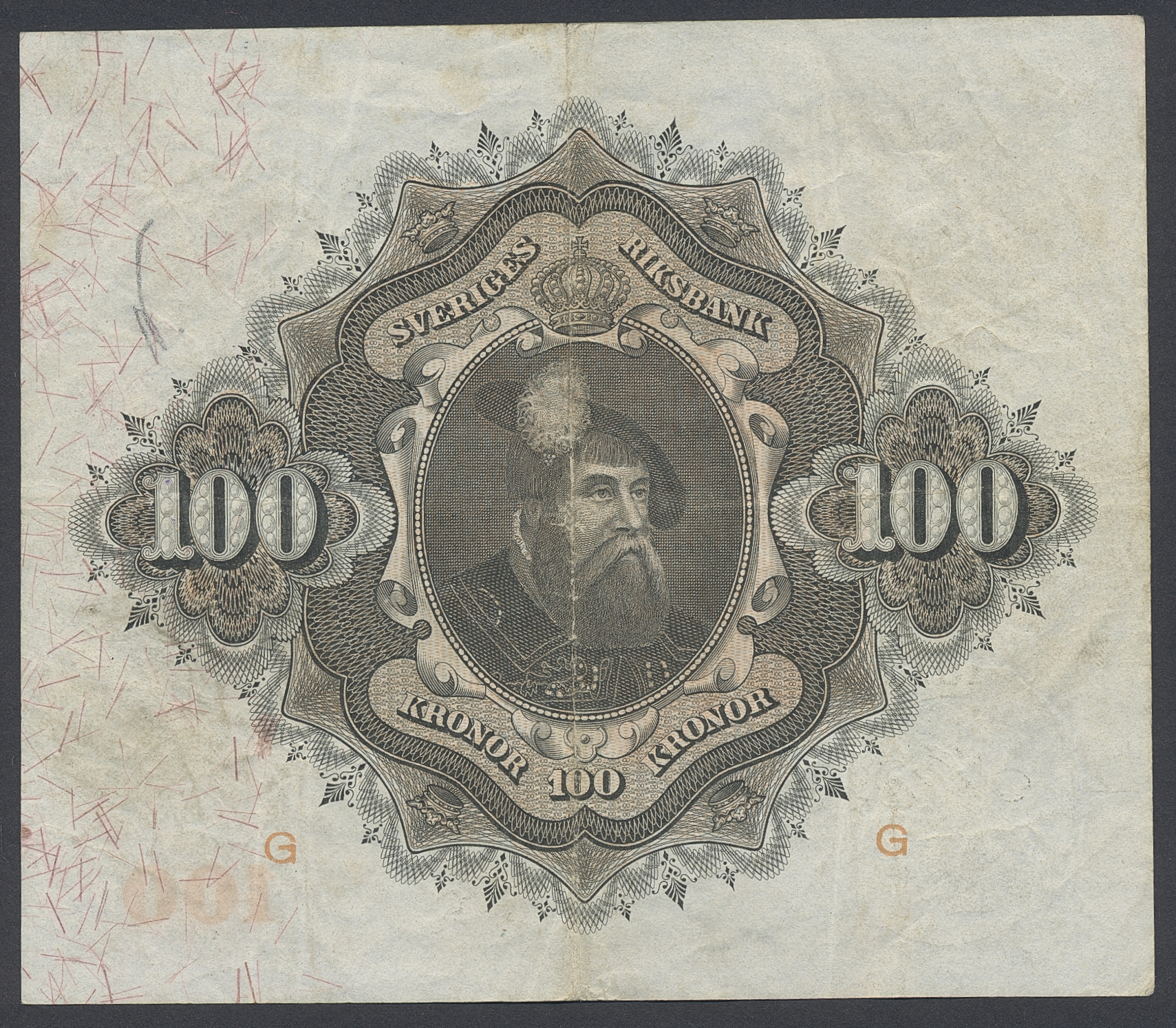 Banknotes, Sweden. SF U8:1, 100 kronor 1918. 1+.