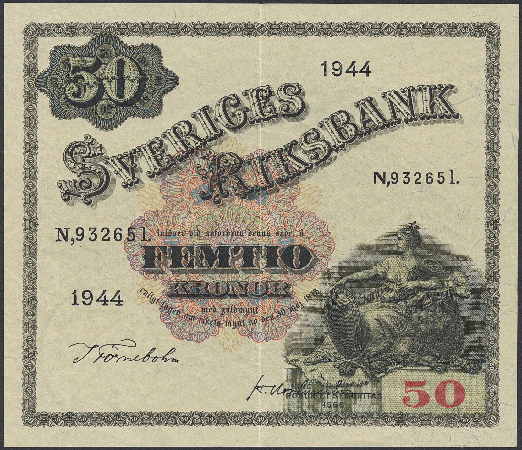 Banknotes, Sweden. SF T7:26, 50 kronor 1944. 01.