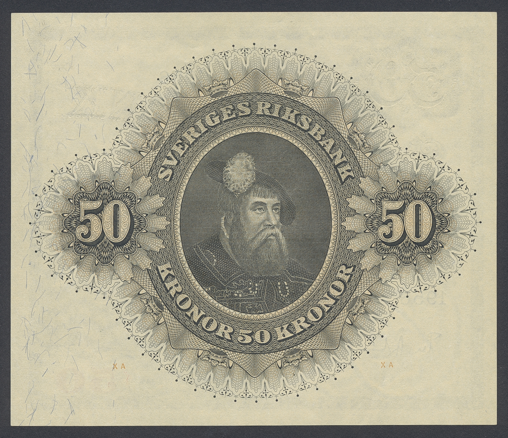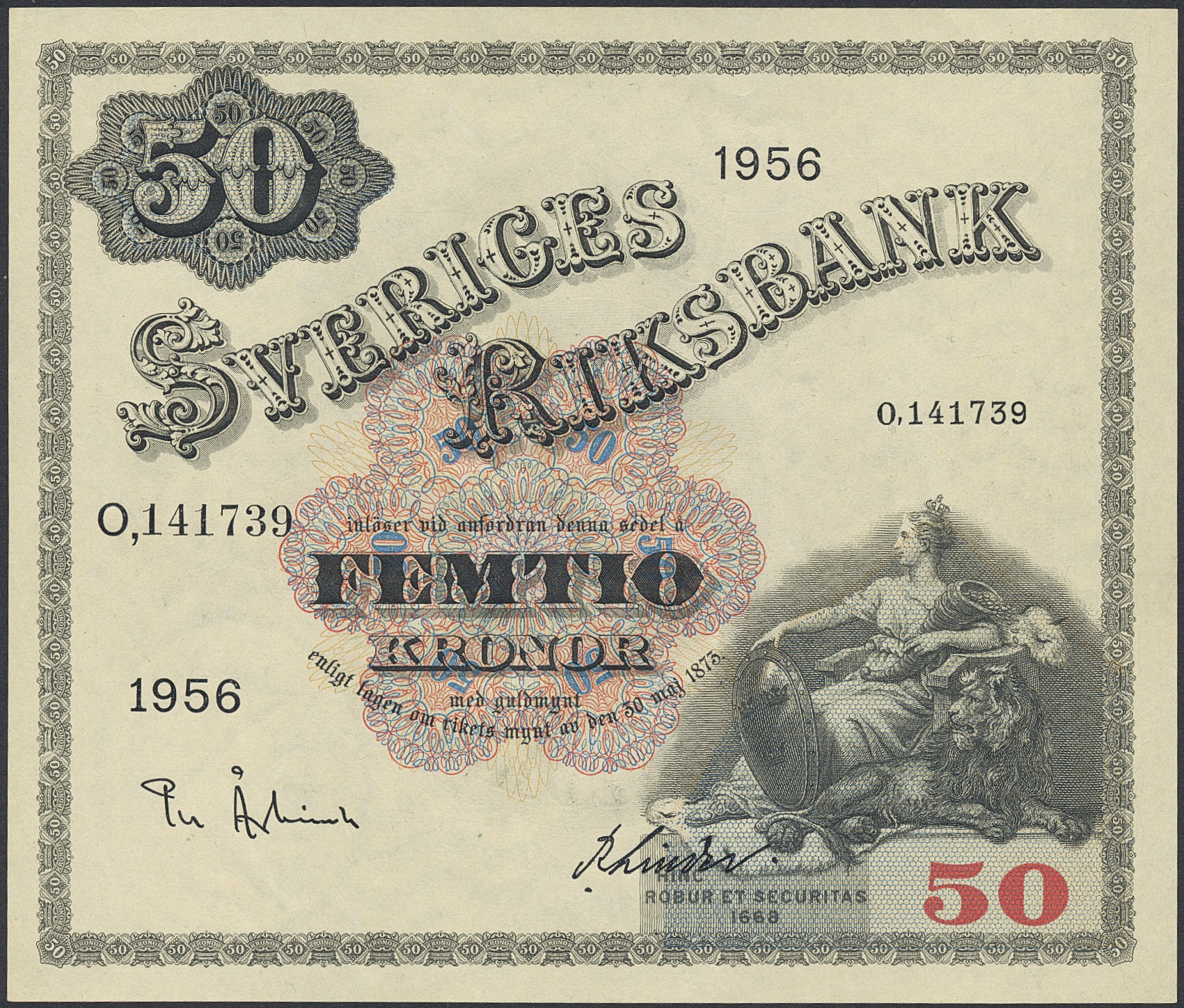 Banknotes, Sweden. SF T9:7, 50 kronor 1956. O141739. Not folded. 0.
