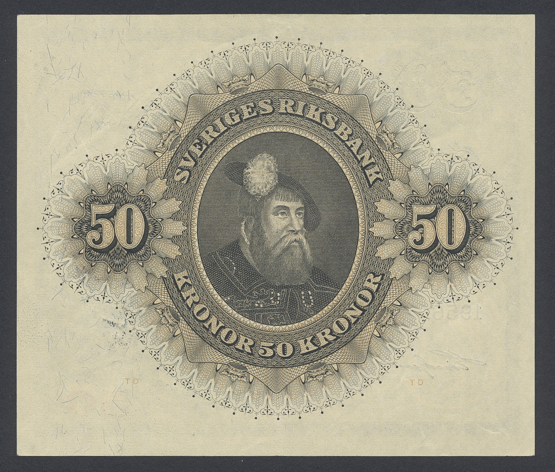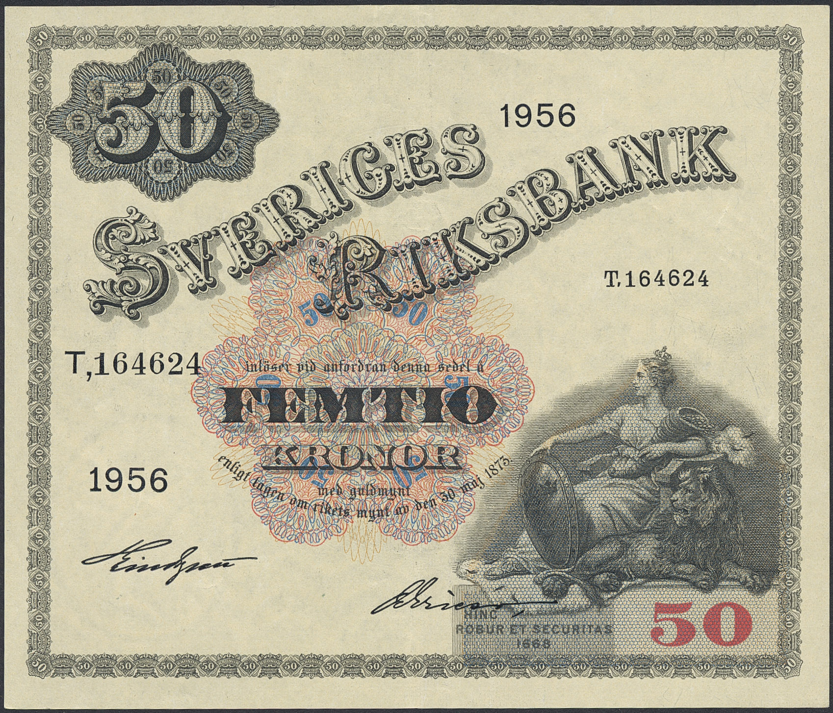 Banknotes, Sweden. SF T9b:7, 50 kronor 1956. With light centerfold. 01.