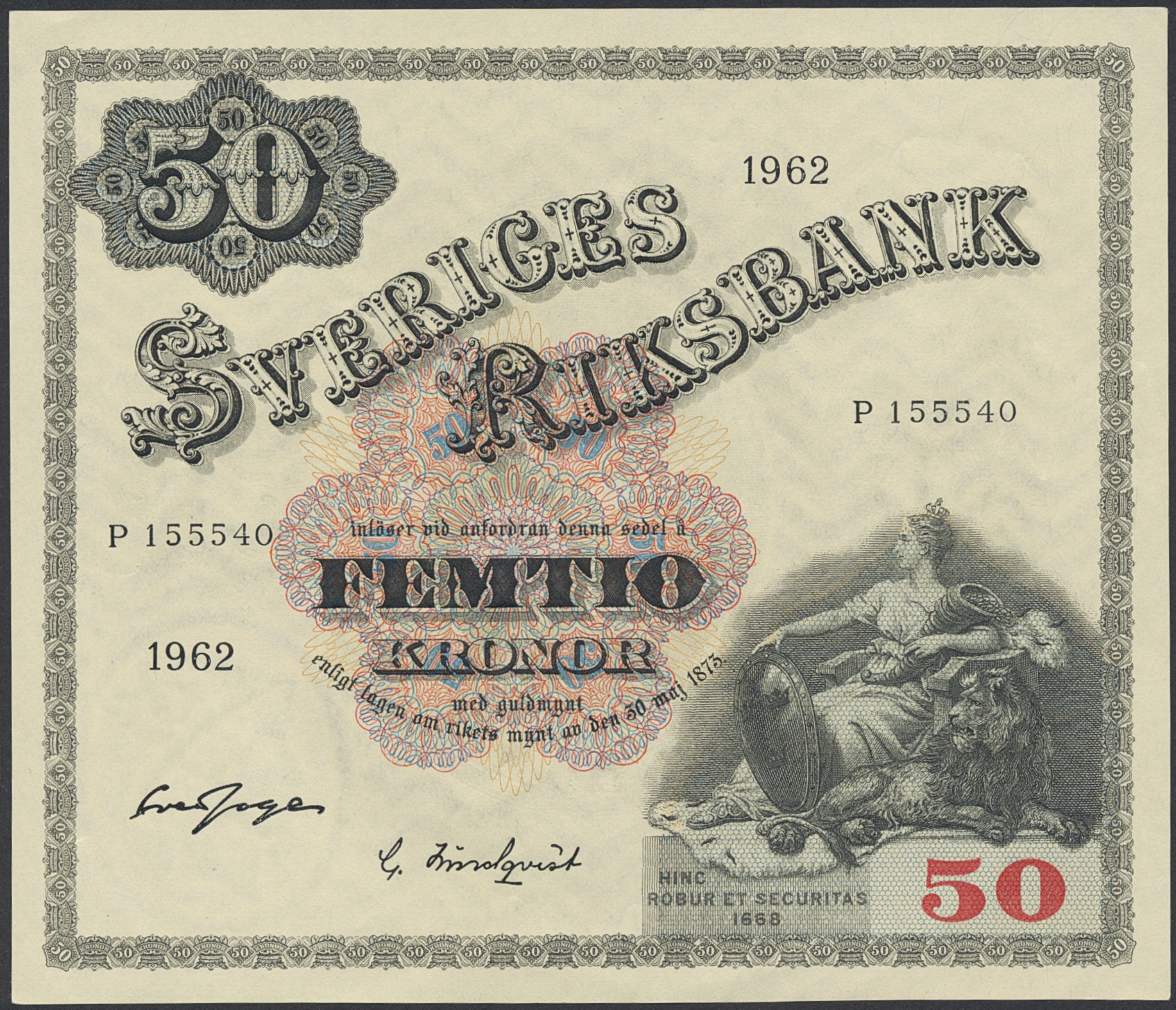 Banknotes, Sweden. SF T10:7, 50 kronor 1965. Not folded. 01/0.