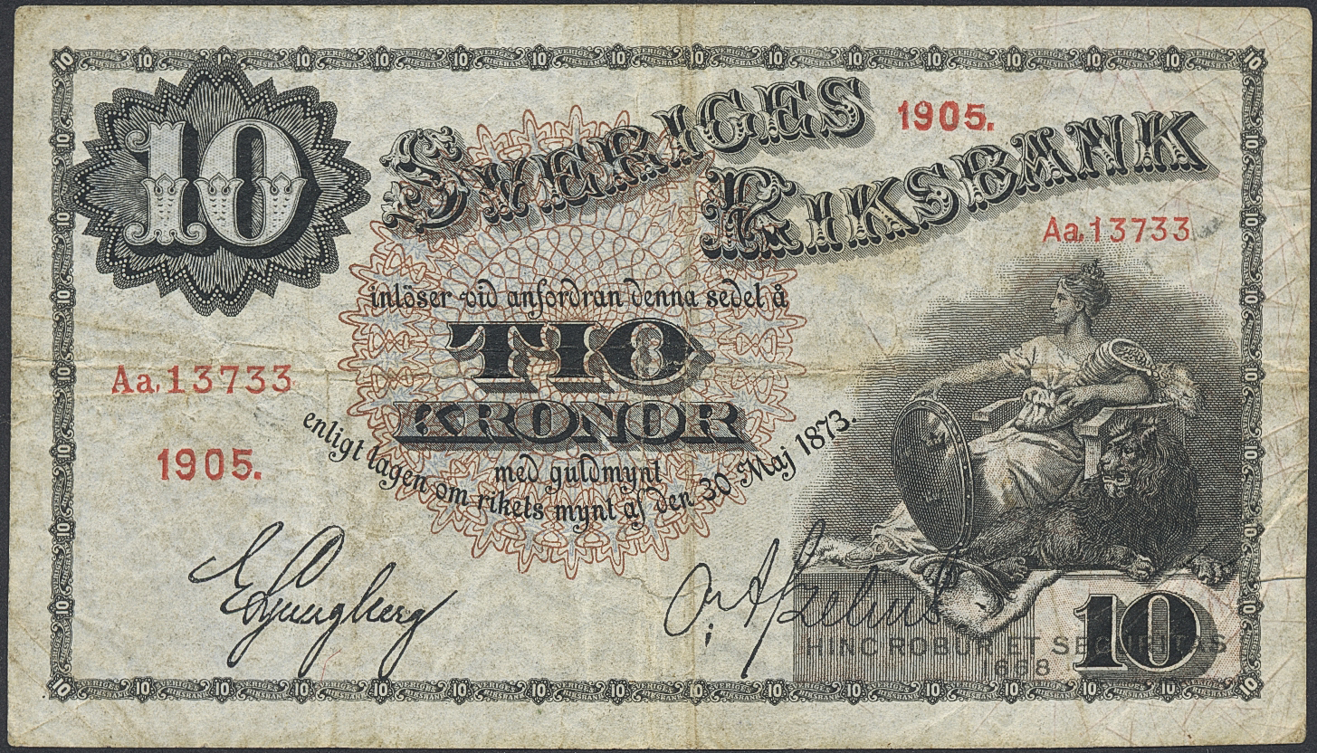 Banknotes, Sweden. SF R3b:15, 10 kronor 1905. 1?/1.