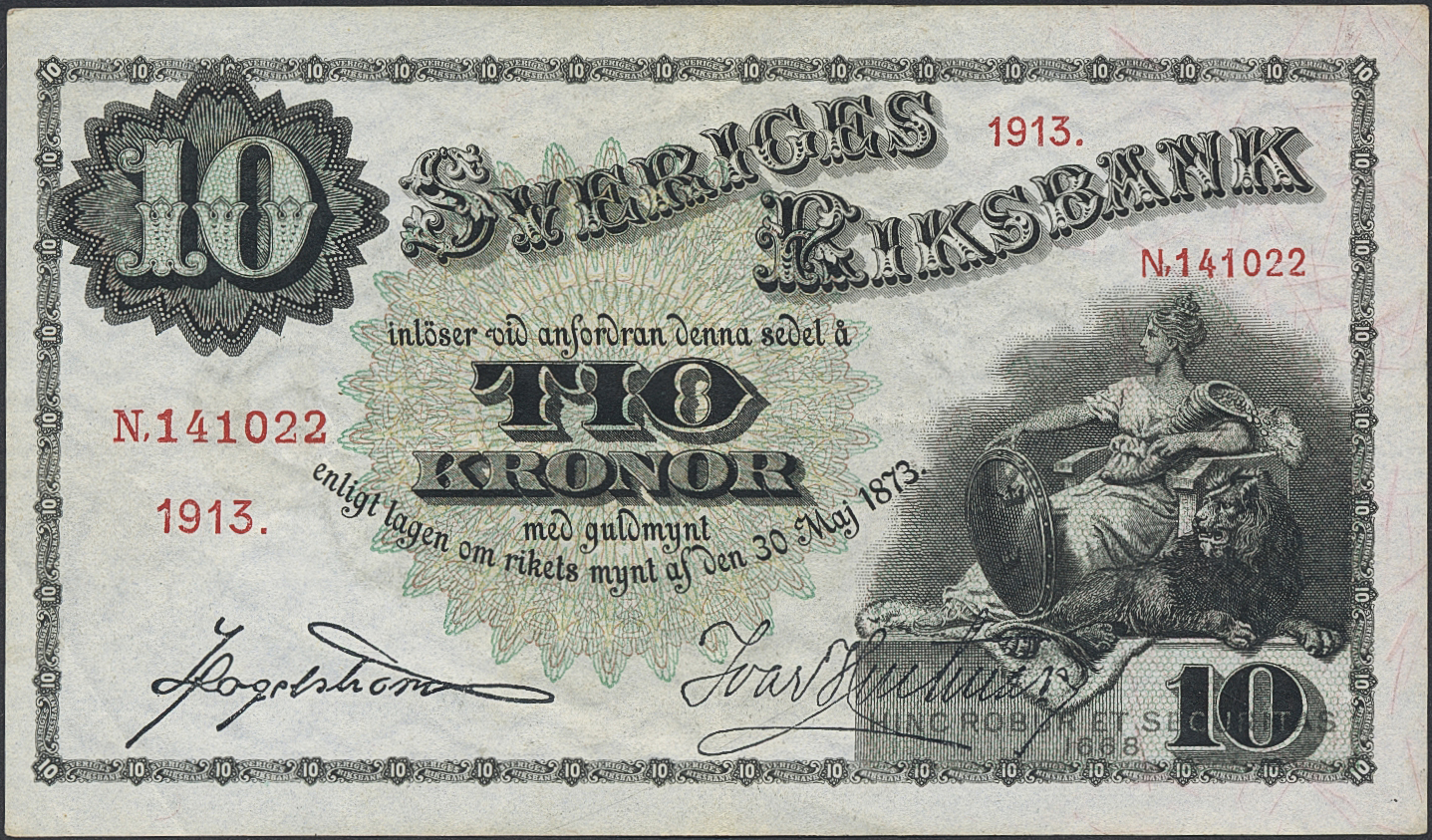 Banknotes, Sweden. SF R4:8, 10 kronor 1913. 1+.