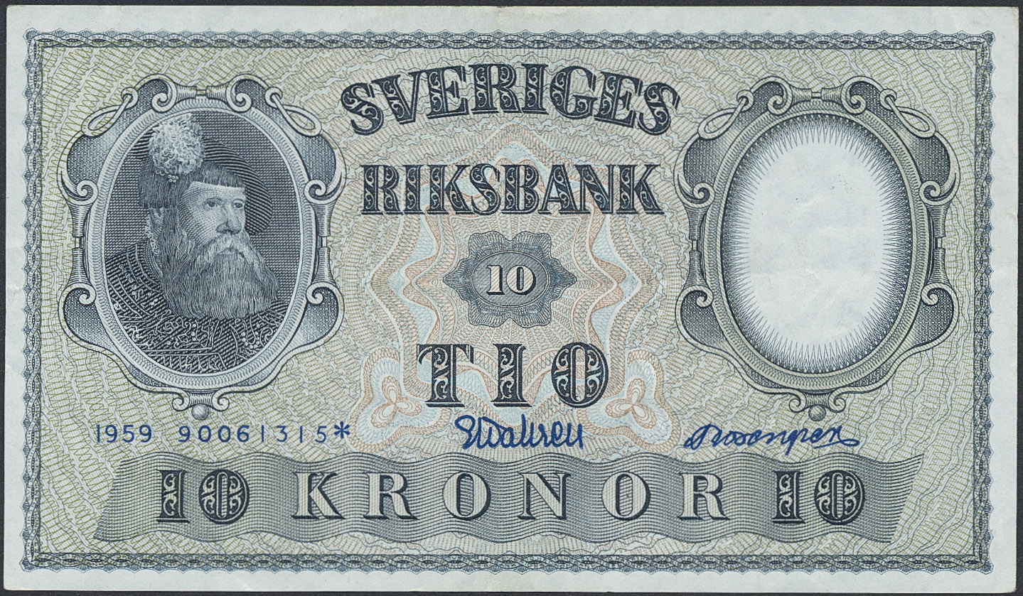 Banknotes, Sweden. SF R7:11, 10 kronor 1959. 90061315*. Replacement note. 1+.