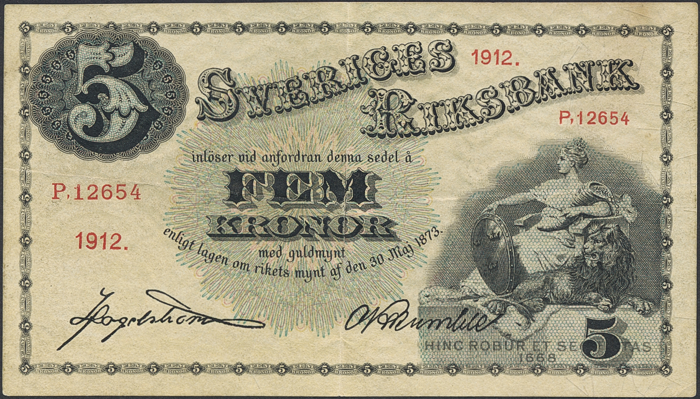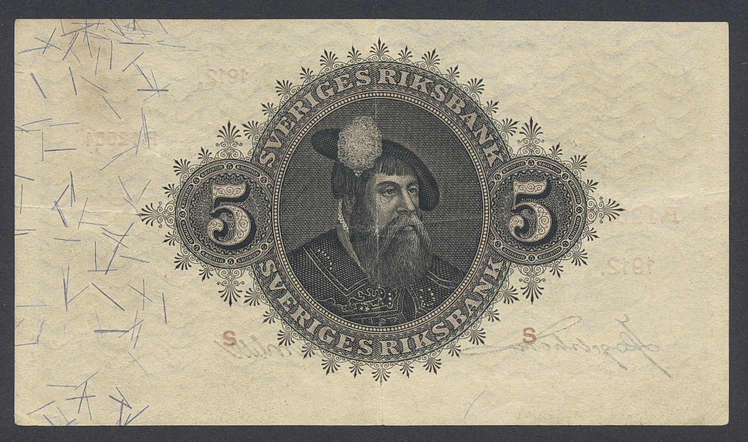Banknotes, Sweden. SF Q6:7, 5 kronor 1912. 1+.